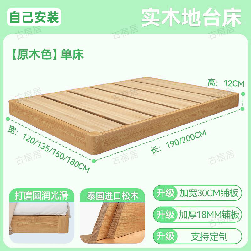 无床头实木床1.2米单人床儿童床床架1米5卧室小户型地台榻榻米床