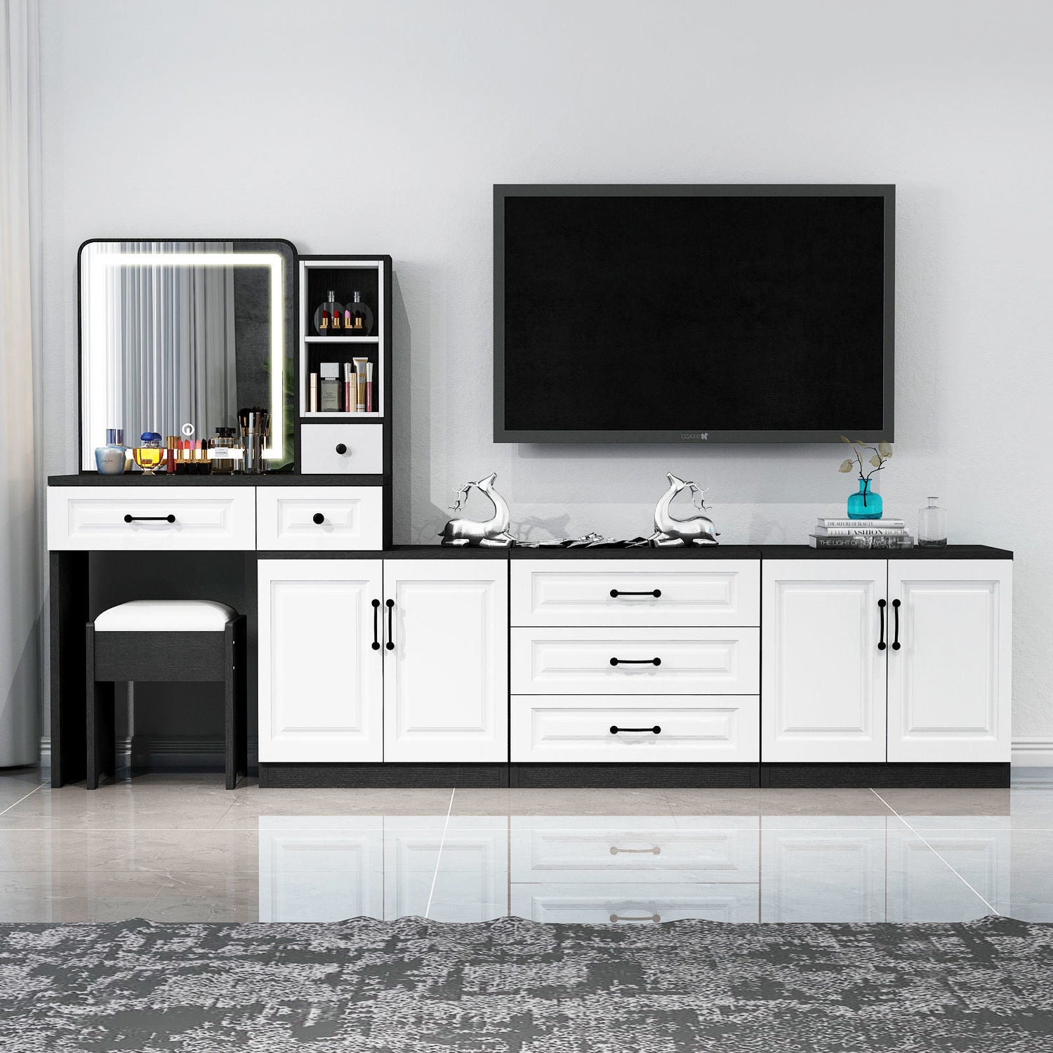 智能镜化妆台组合电视柜一体收纳柜多功能现代简约梳妆台卧室桌子
