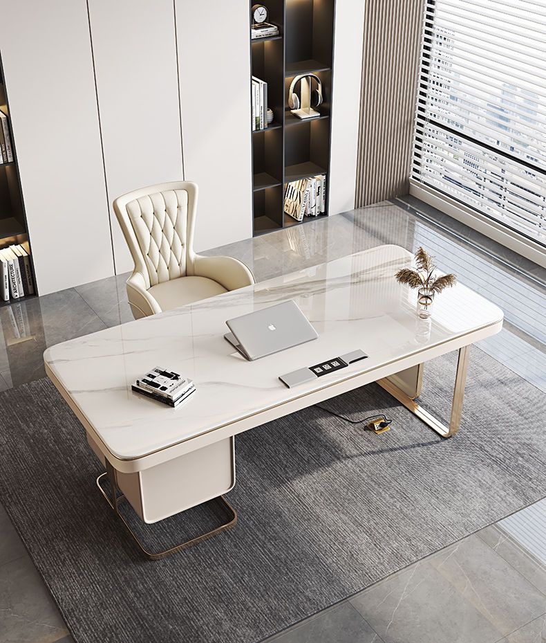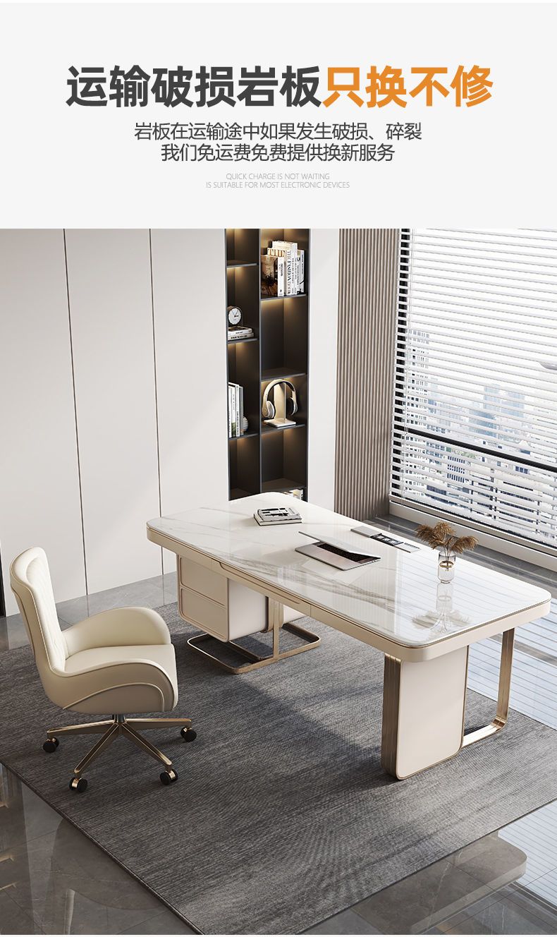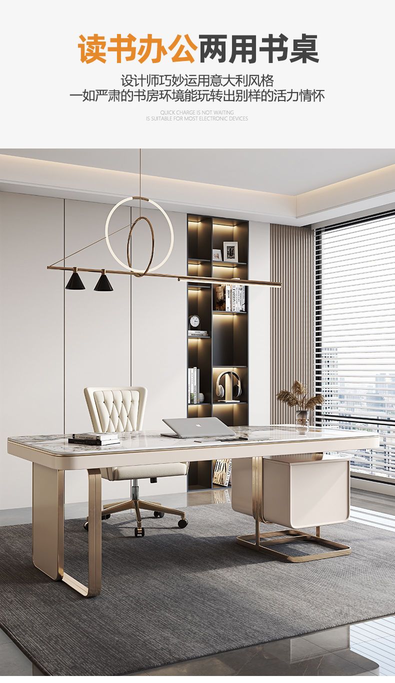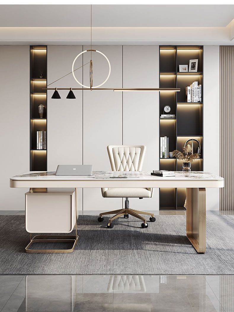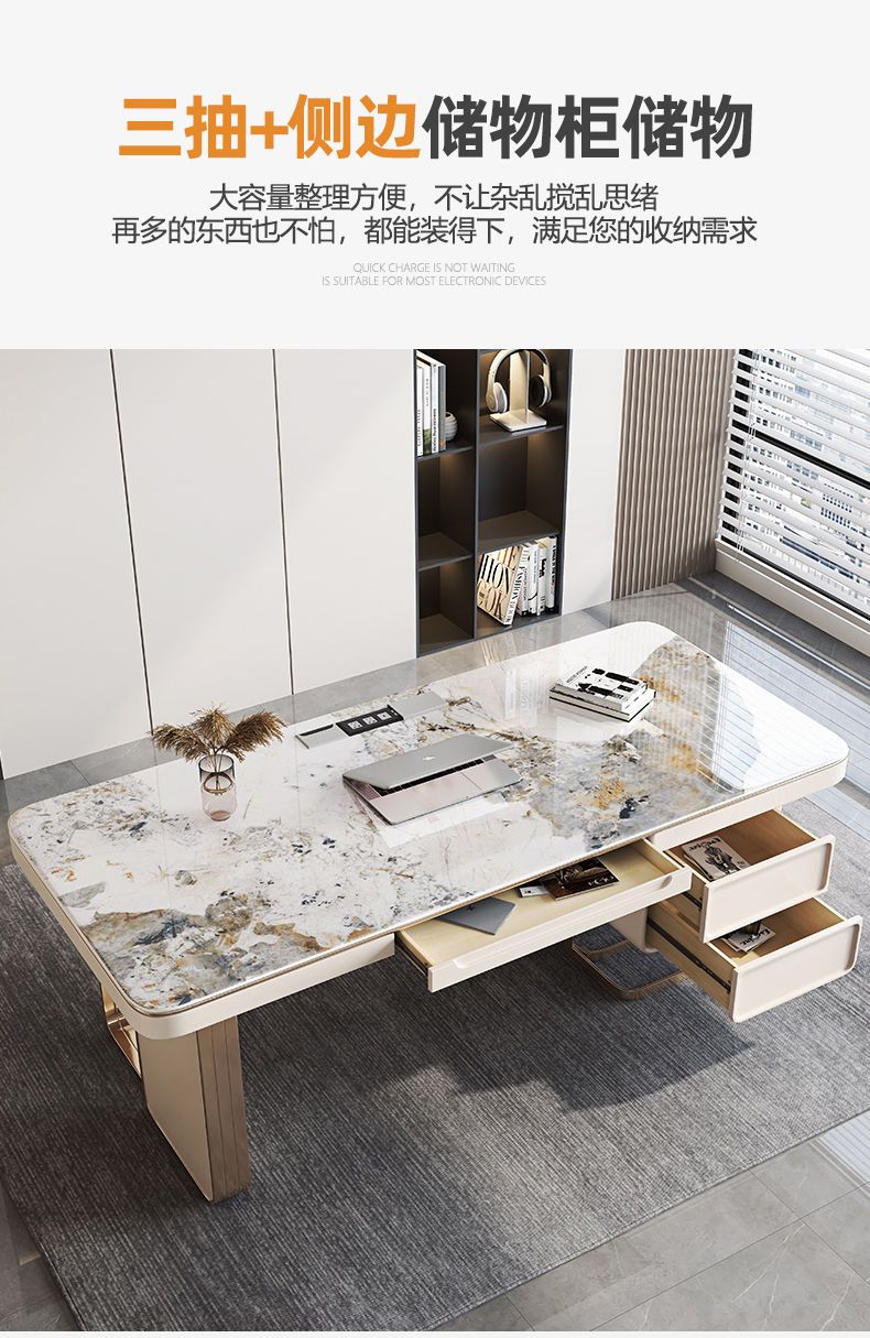 書桌輕奢現代簡約風高端巖板辦公桌椅電腦桌設計師桌子書房寫字檯
