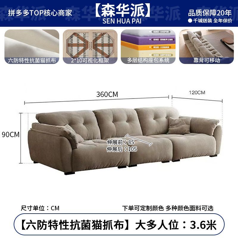 森华派现代简约云朵沙发客厅小户型可调节靠背直排雪尼尔布艺沙发