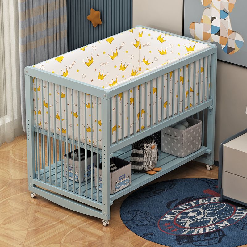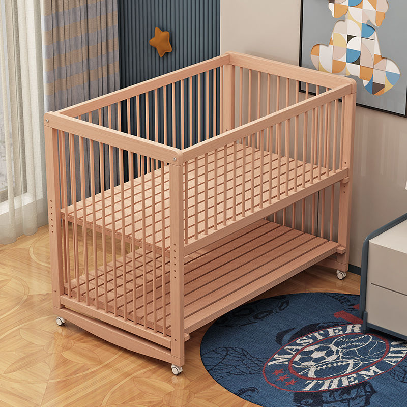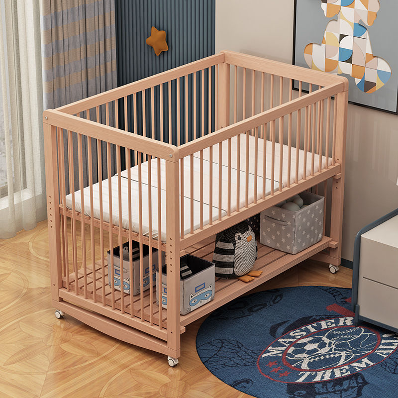 榉木婴儿床拼接床加宽床带护栏可推拉搖搖床尿布台简约现代