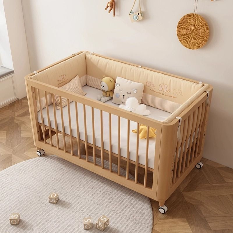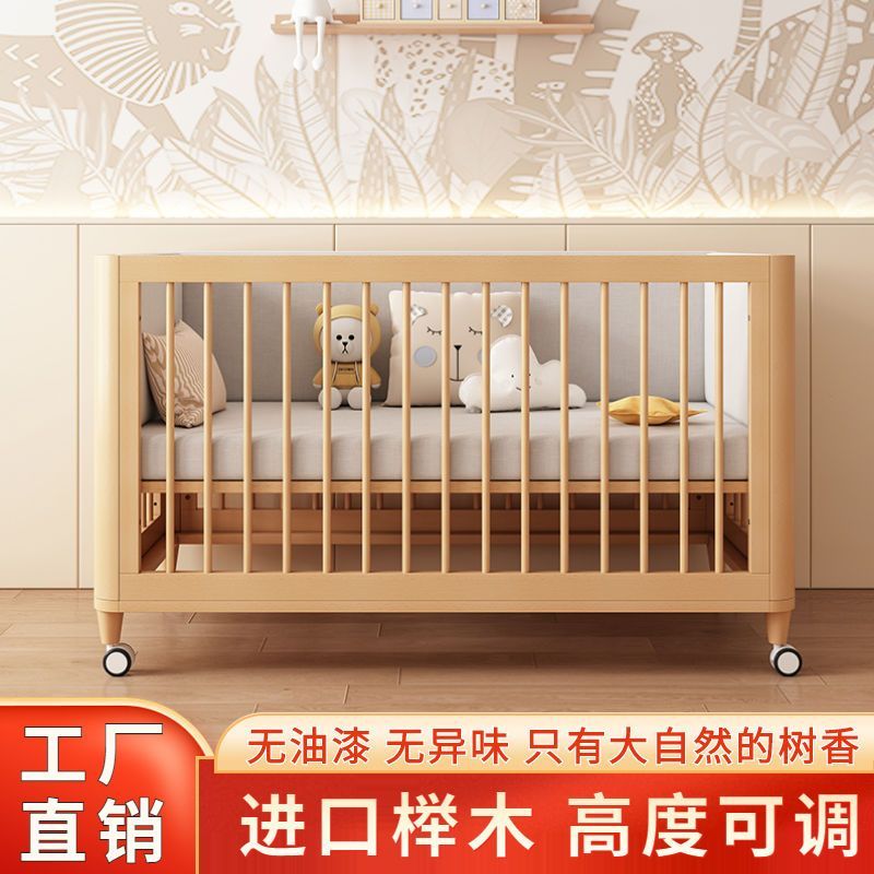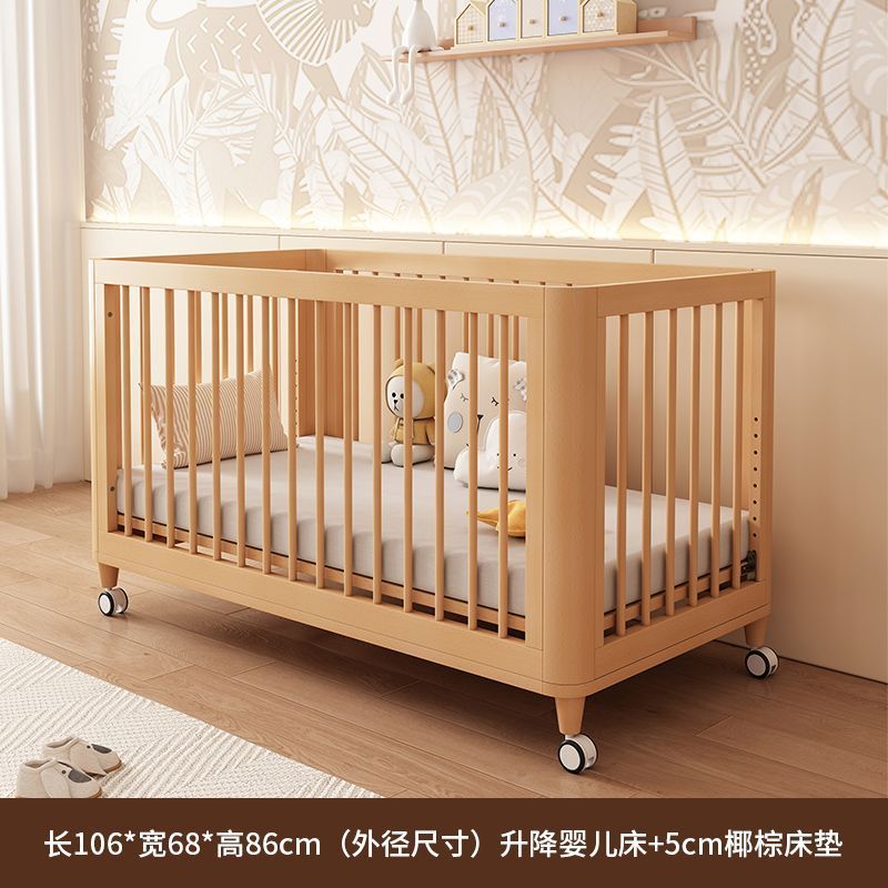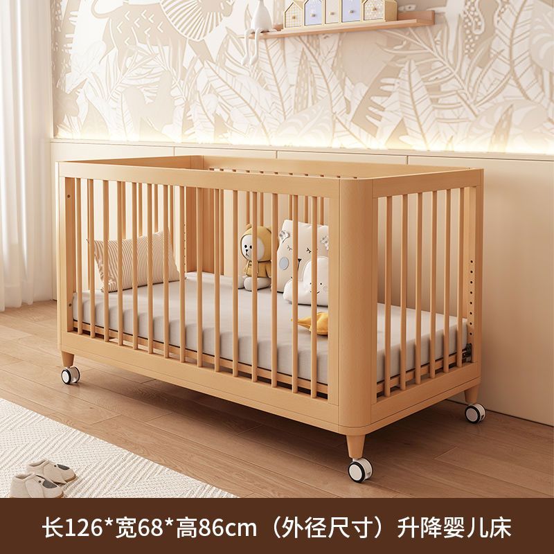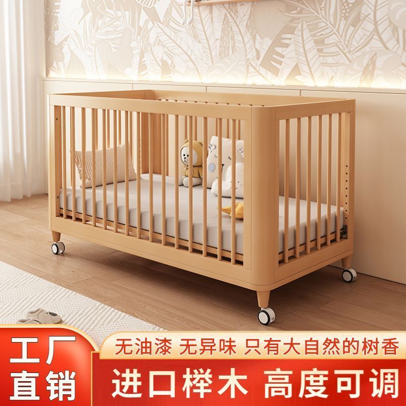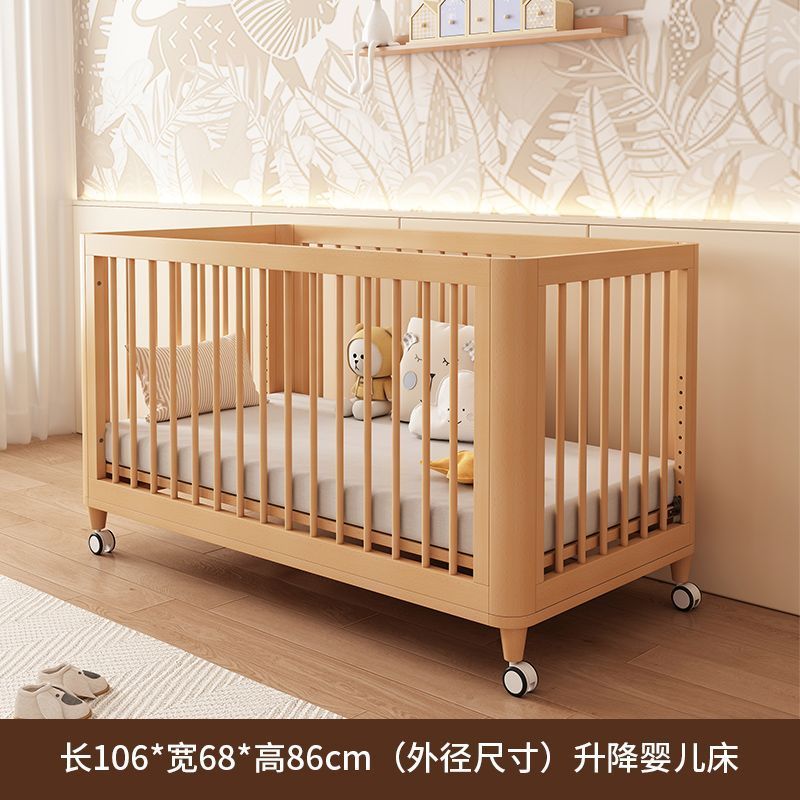 榉木婴儿拼接床加宽床边可升降实木bb床新生儿宝宝床新生婴儿床
