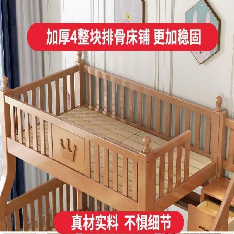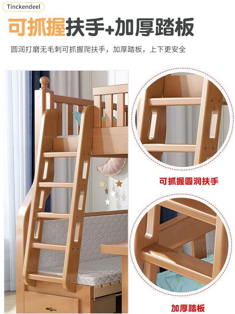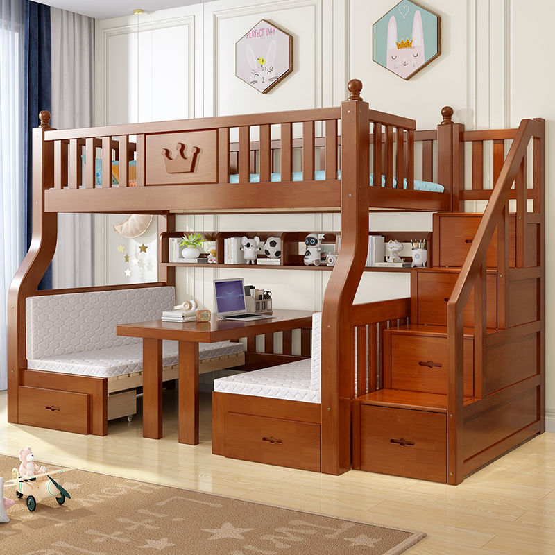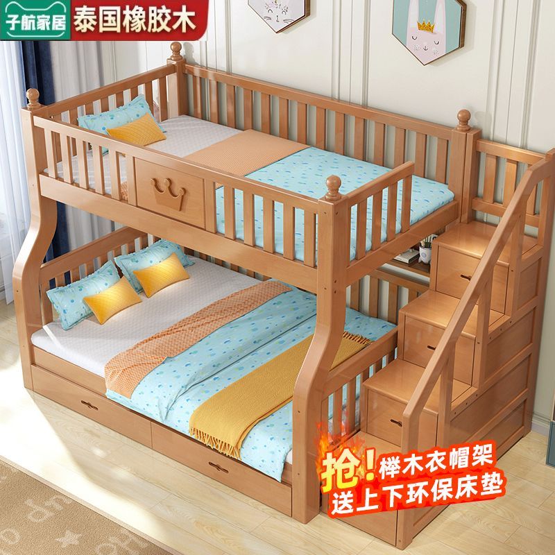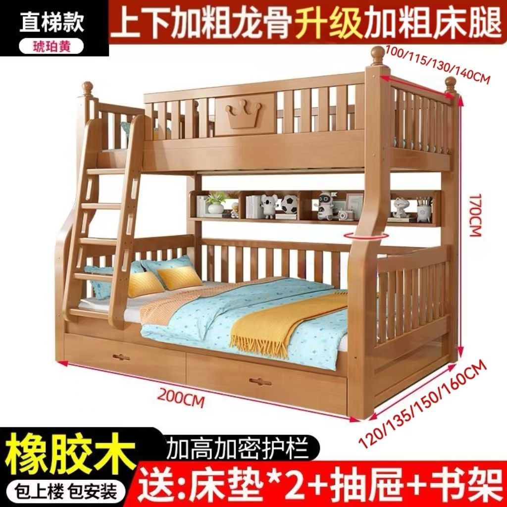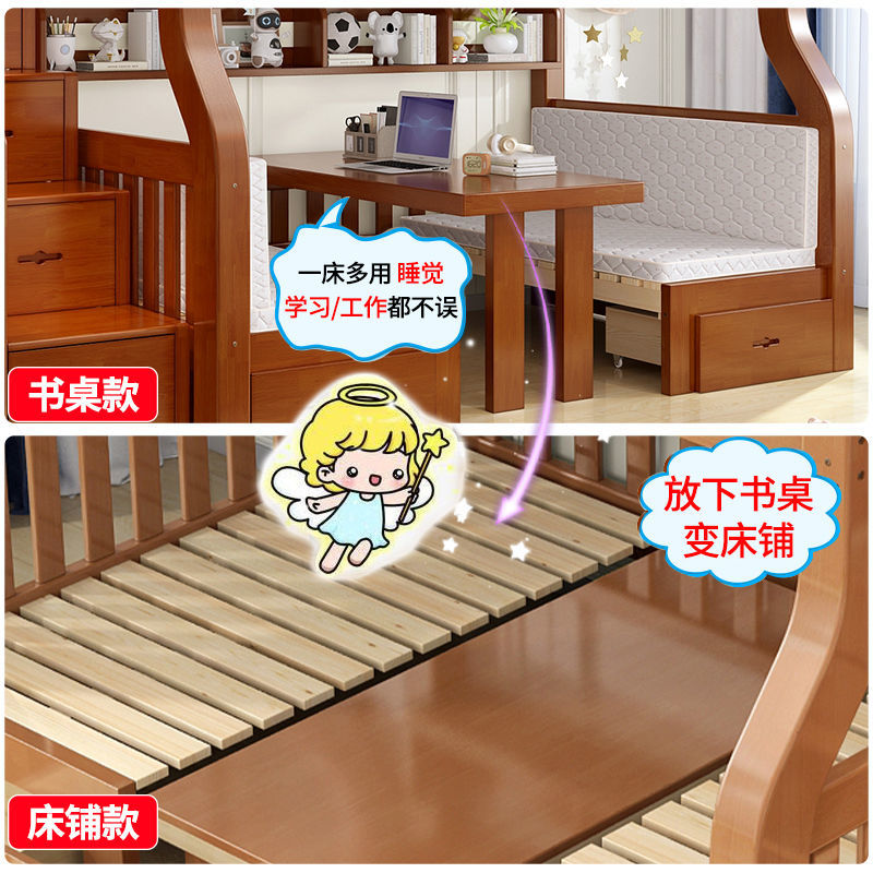 橡胶木上下床双层床带书桌高低床上下铺全实木儿童床成年子母床