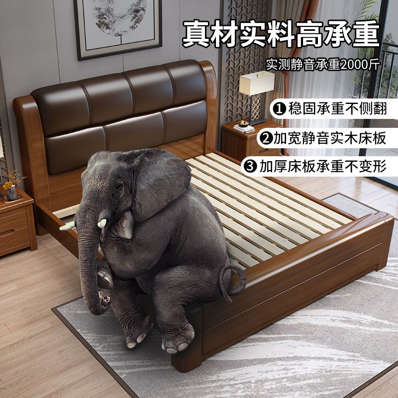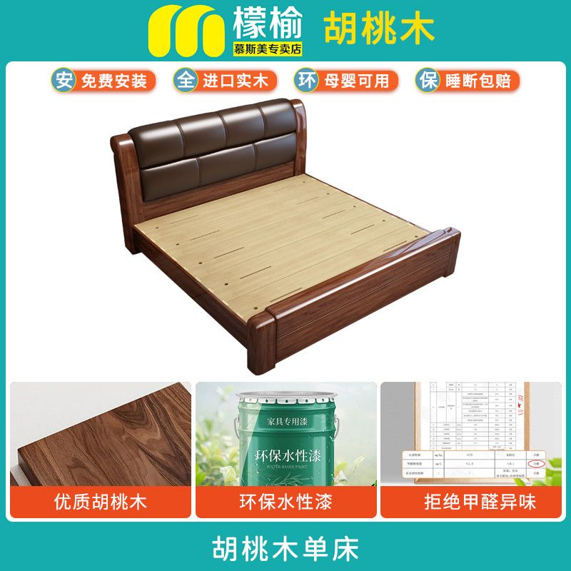 檬榆金丝胡桃木实木床简约中式1.8米双人大床主卧榫卯软靠婚床