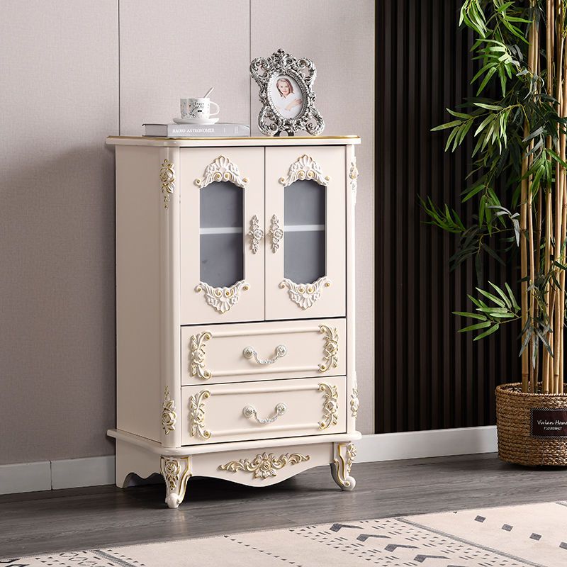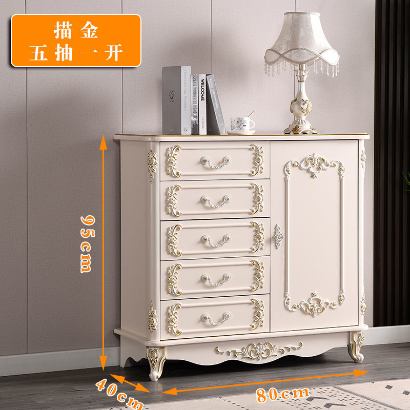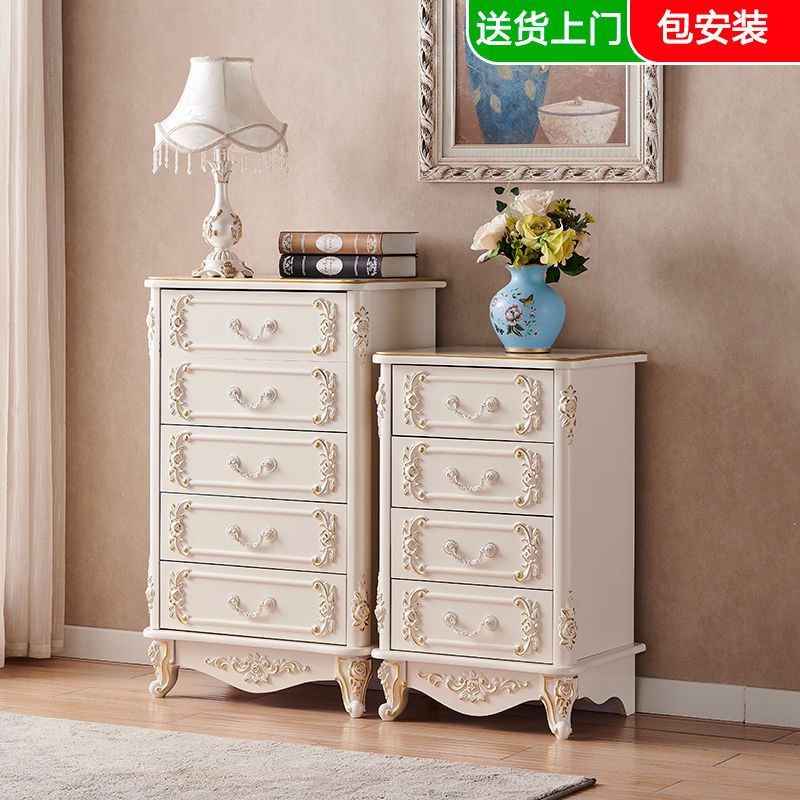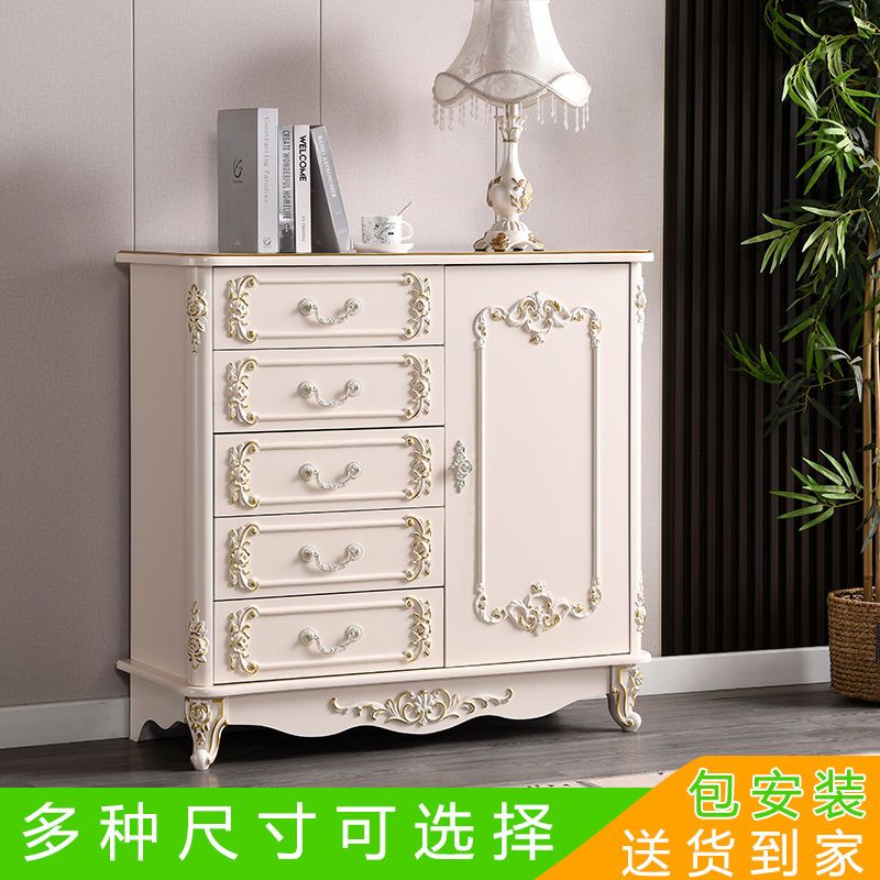 欧式五斗柜带开扇卧室收纳柜储物柜象牙白色烤漆实木抽屉雕花轻奢