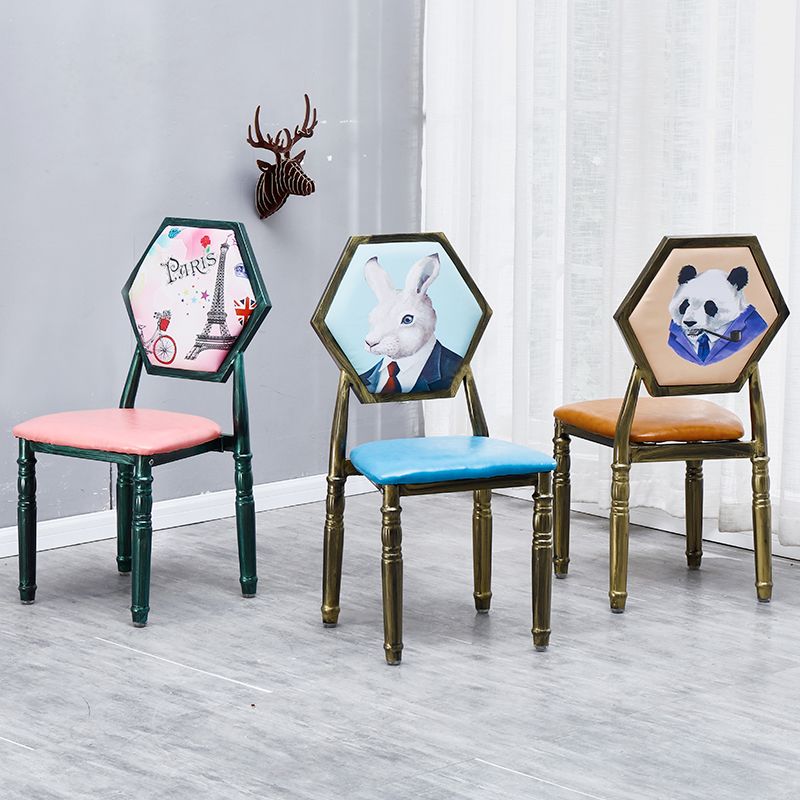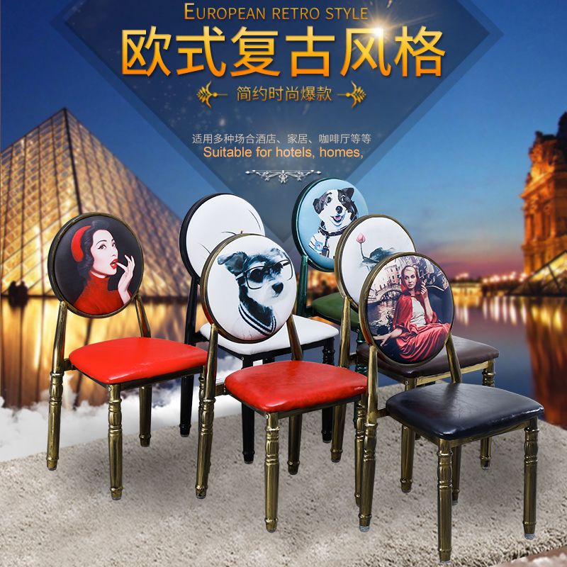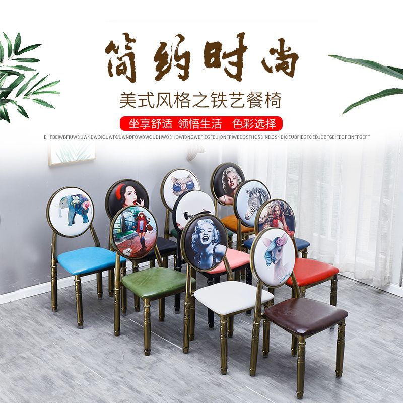欧式复古铁艺主题餐椅创意个性化妆凳美甲椅子网红咖啡椅靠背椅子