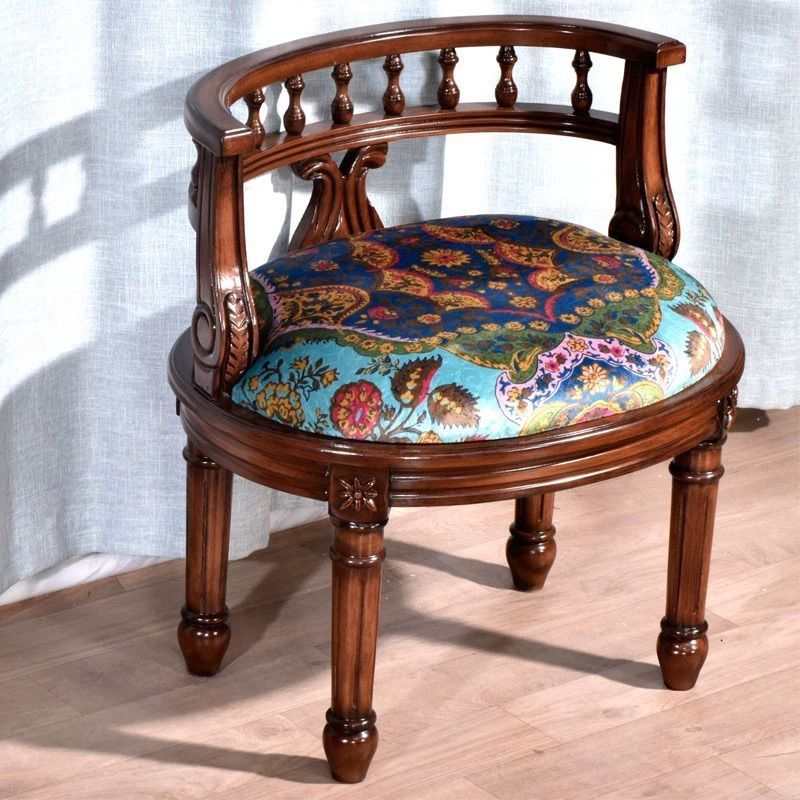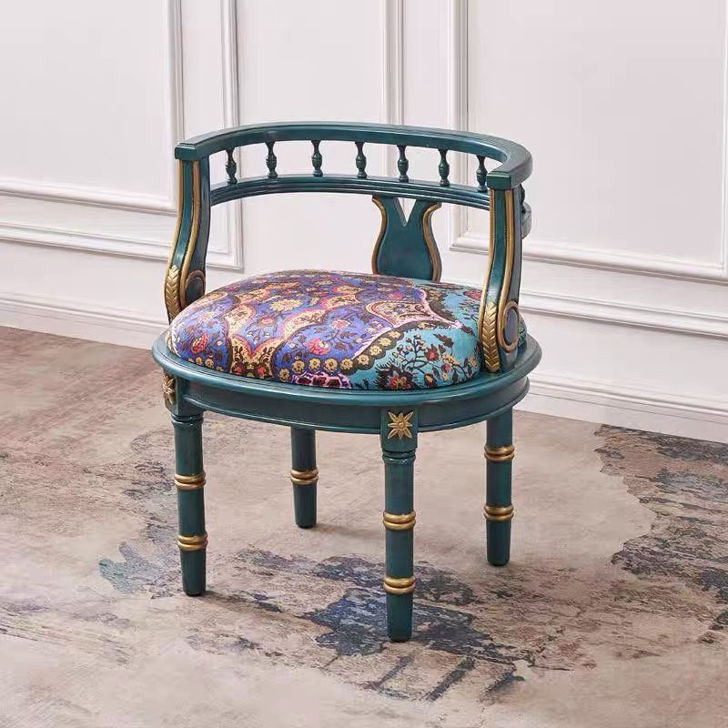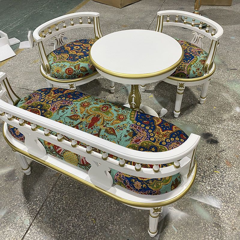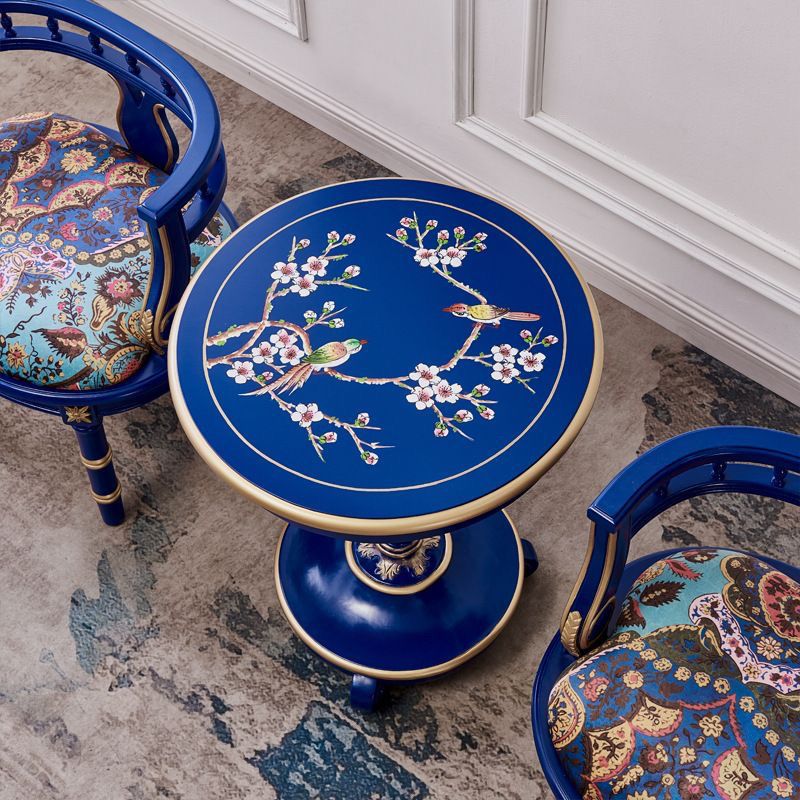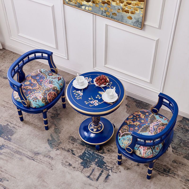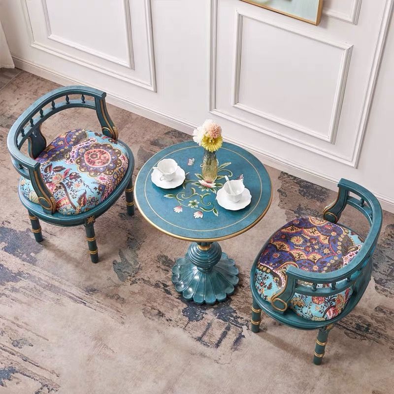 欧式实木小茶台椅组合阳台休闲小圆桌复古彩绘软包小院露台圆桌椅