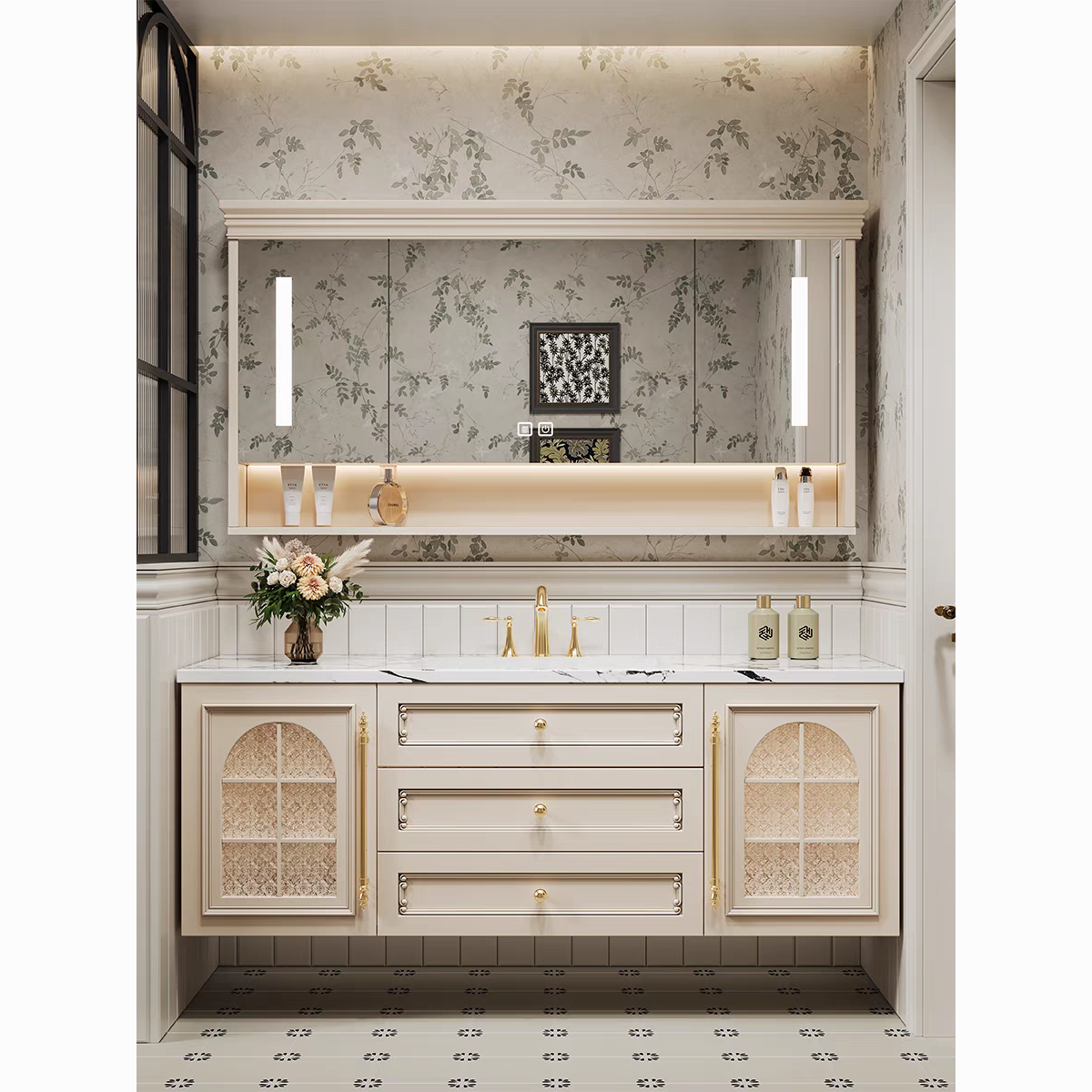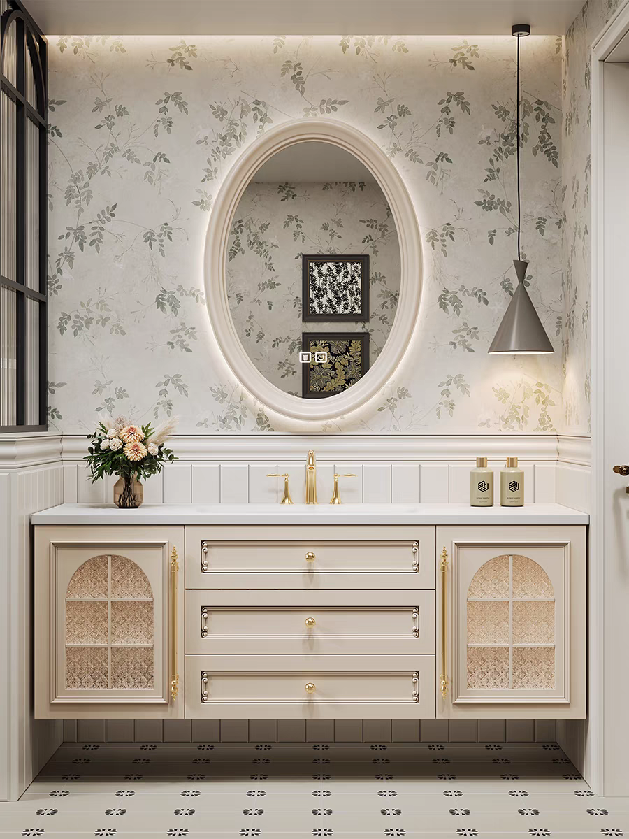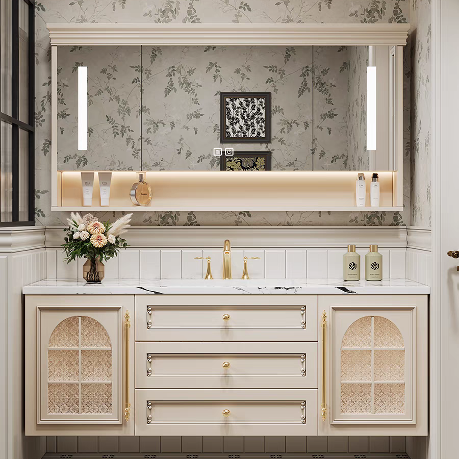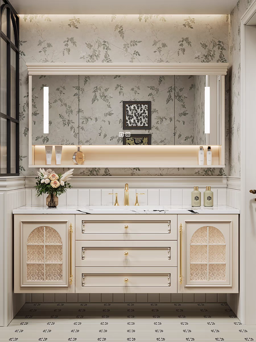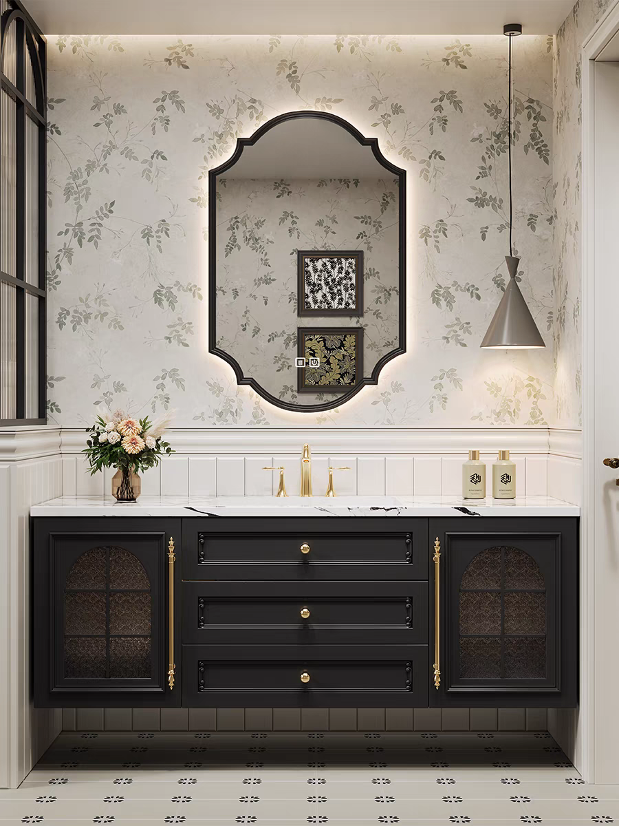 法式复古浴室柜橡木美式组合卫生间陶瓷一体盆美式洗手洗脸洗漱台