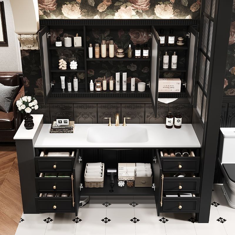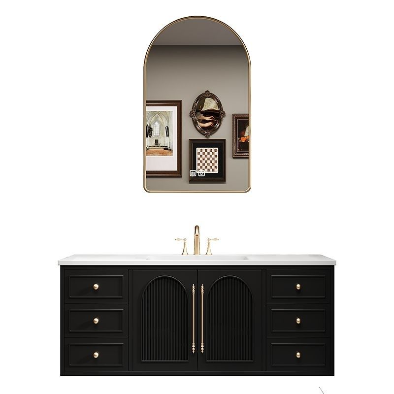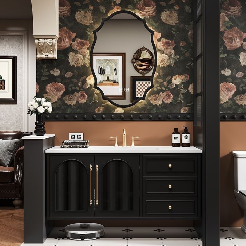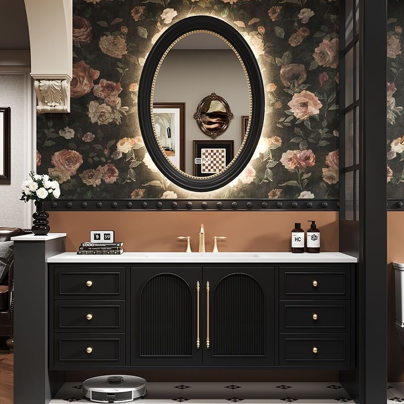 法式复古浴室柜洗漱台定制岩板热弯一体盆陶瓷卫生间洗手盆柜组合