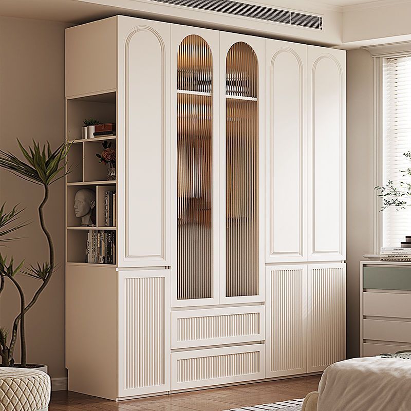法式奶油风分段式衣柜家用卧室免拉手对开门衣服柜子一门到顶衣橱