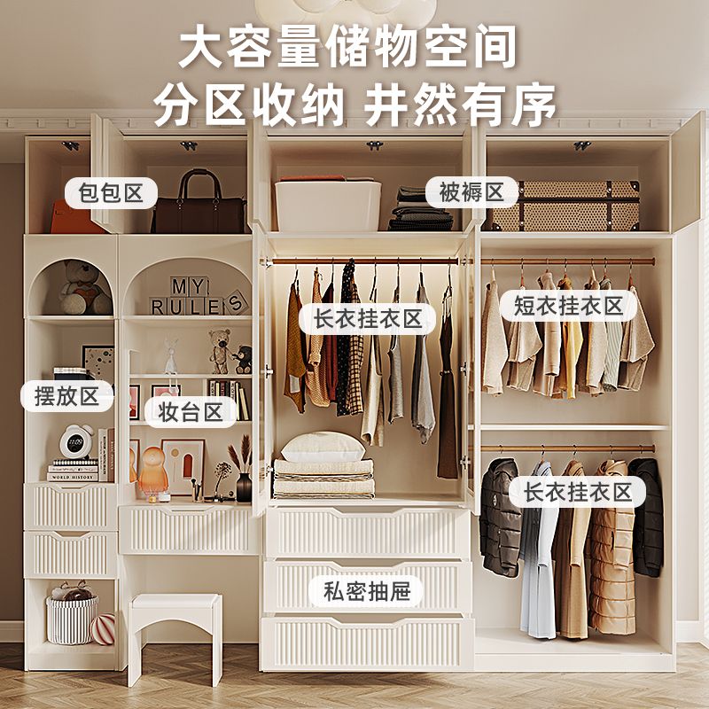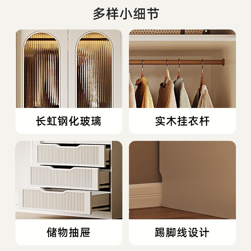 法式奶油风衣柜小户型推拉门家用卧室储物柜现代简约加固组合衣橱