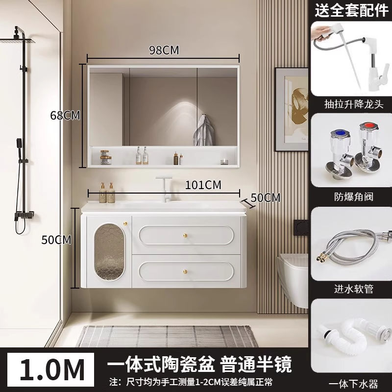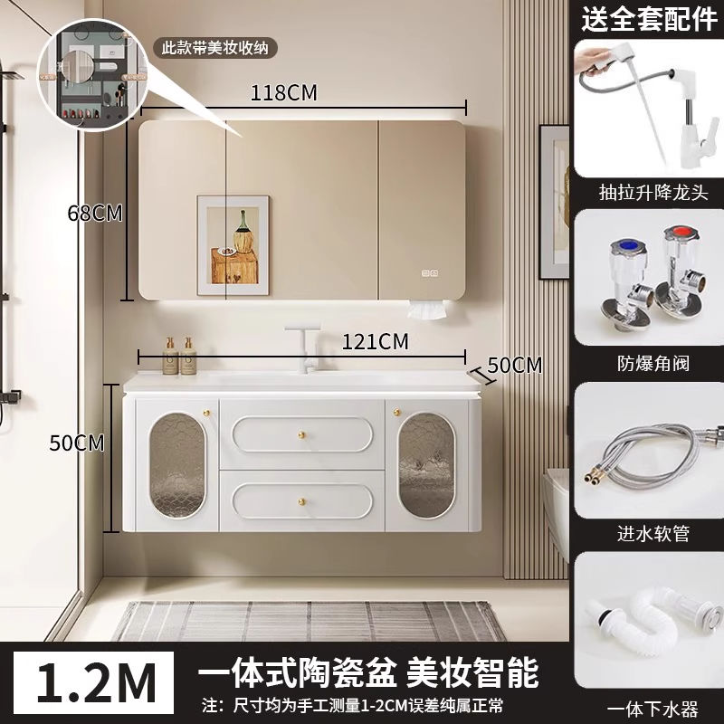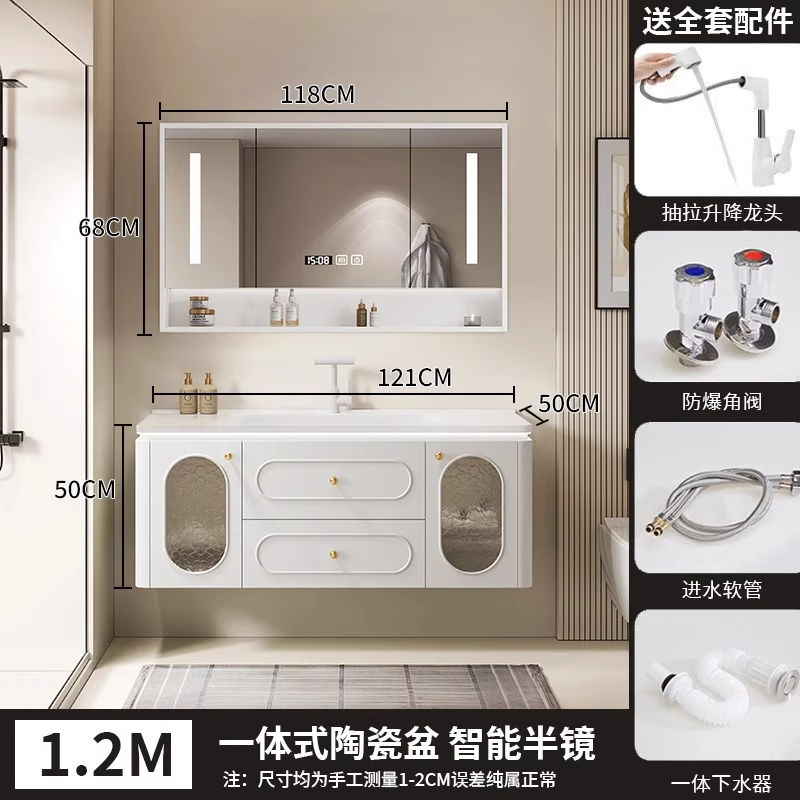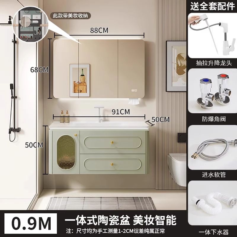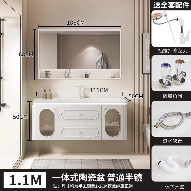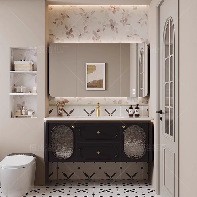 法式橡木浴室柜陶瓷奶油一体组合卫生间洗手池洗脸盆洗手盆洗漱