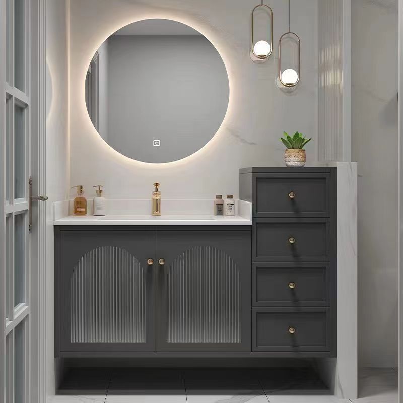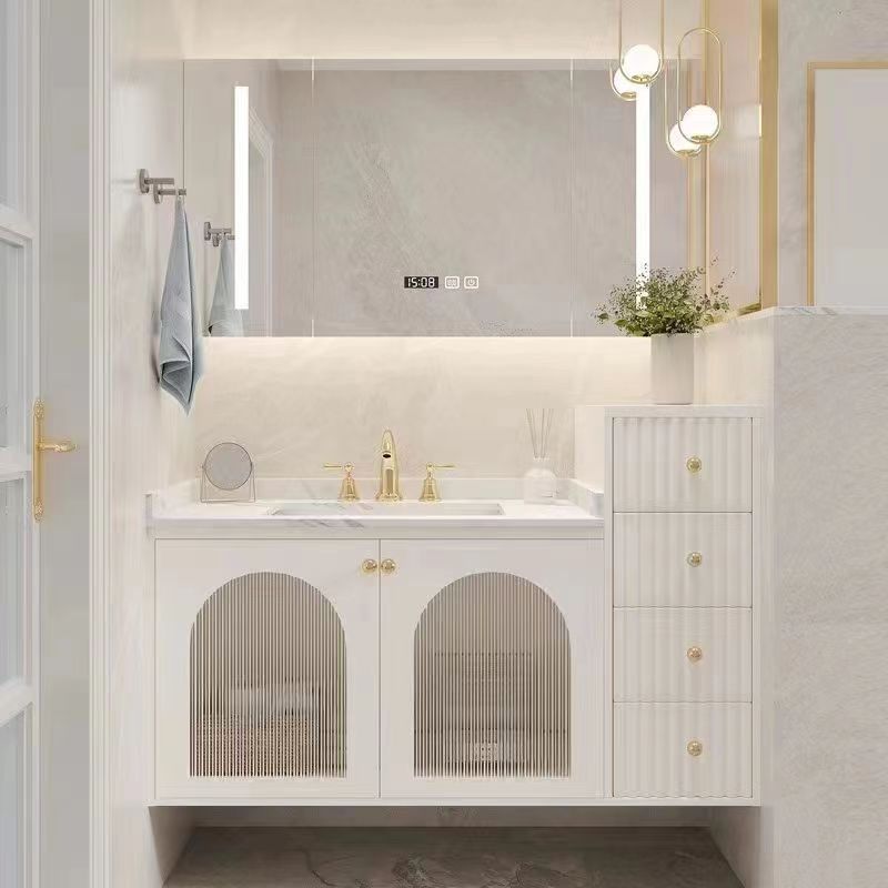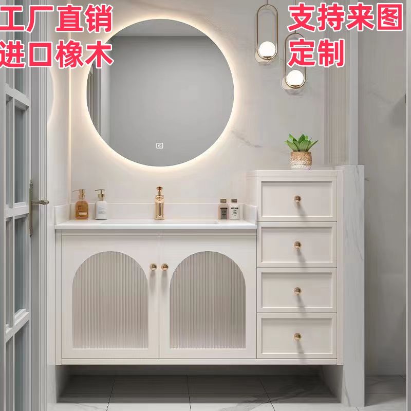 法式橡木浴室柜陶瓷组合一体美式岩板洗漱洗手盆卫生间卫浴洗脸盆