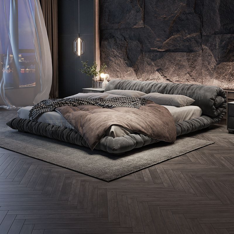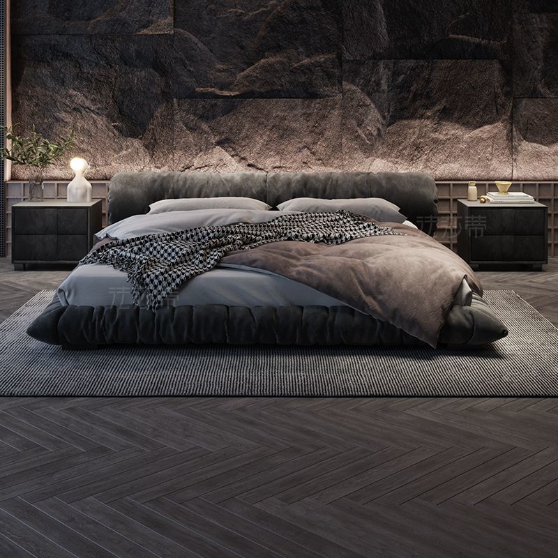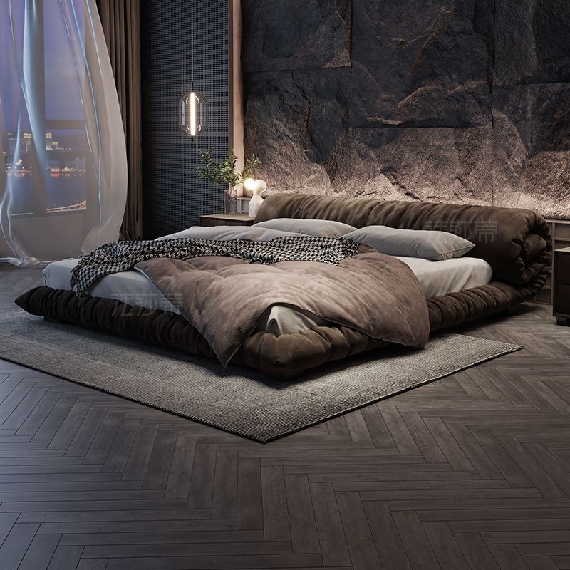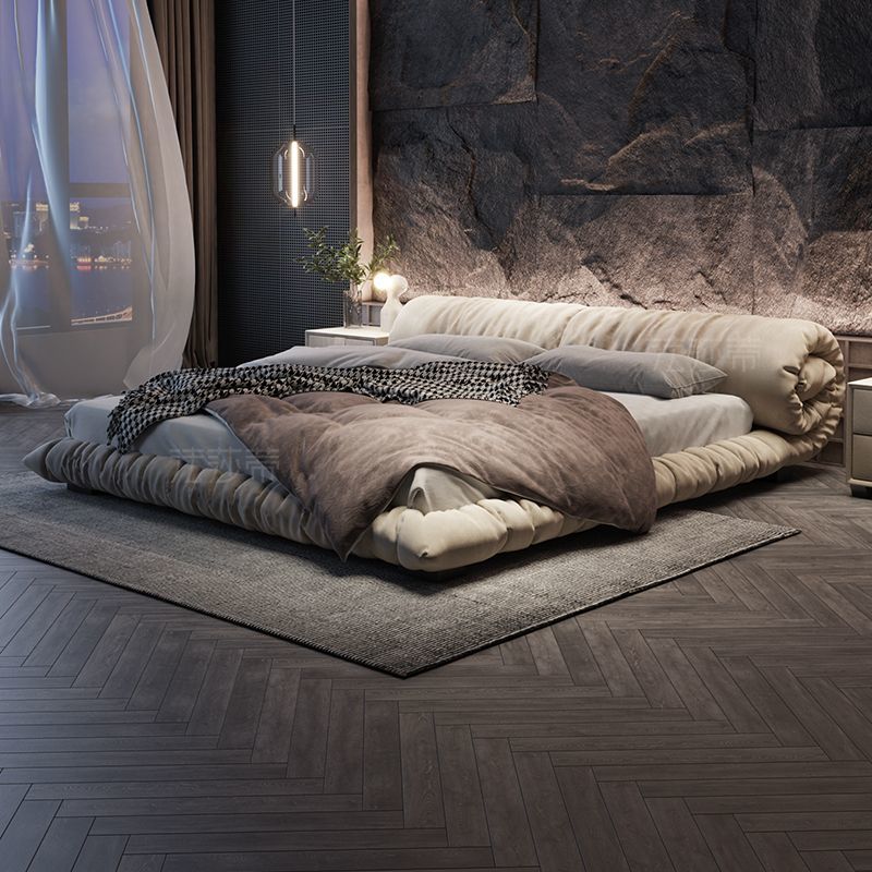 法莎蒂布艺床猫爪布侘寂风主卧室现代简约双人意式网红花卷落地床