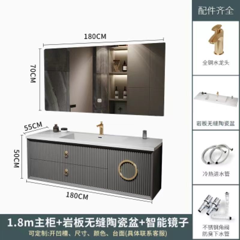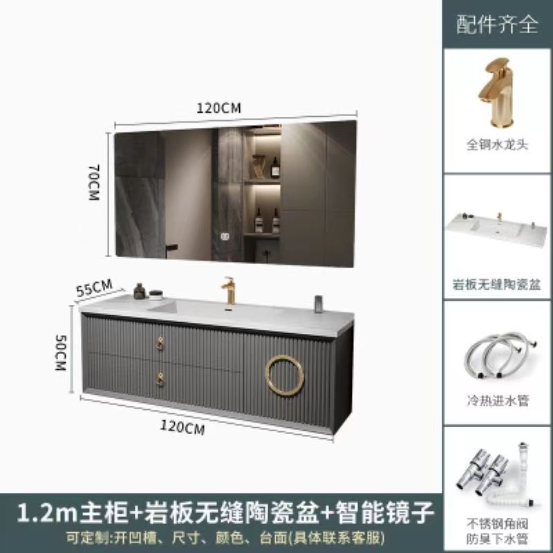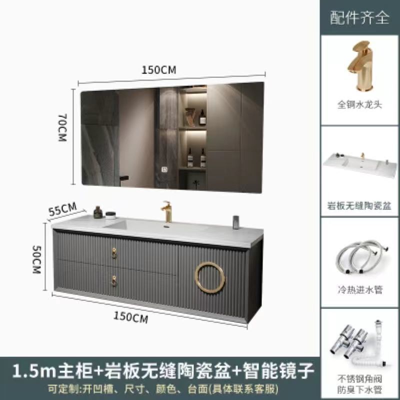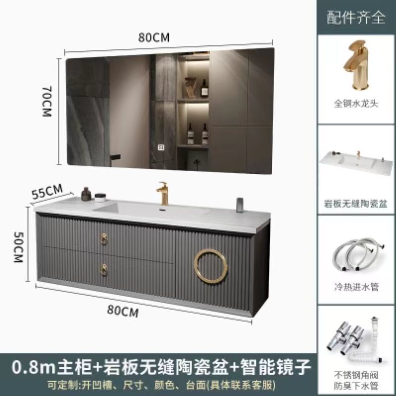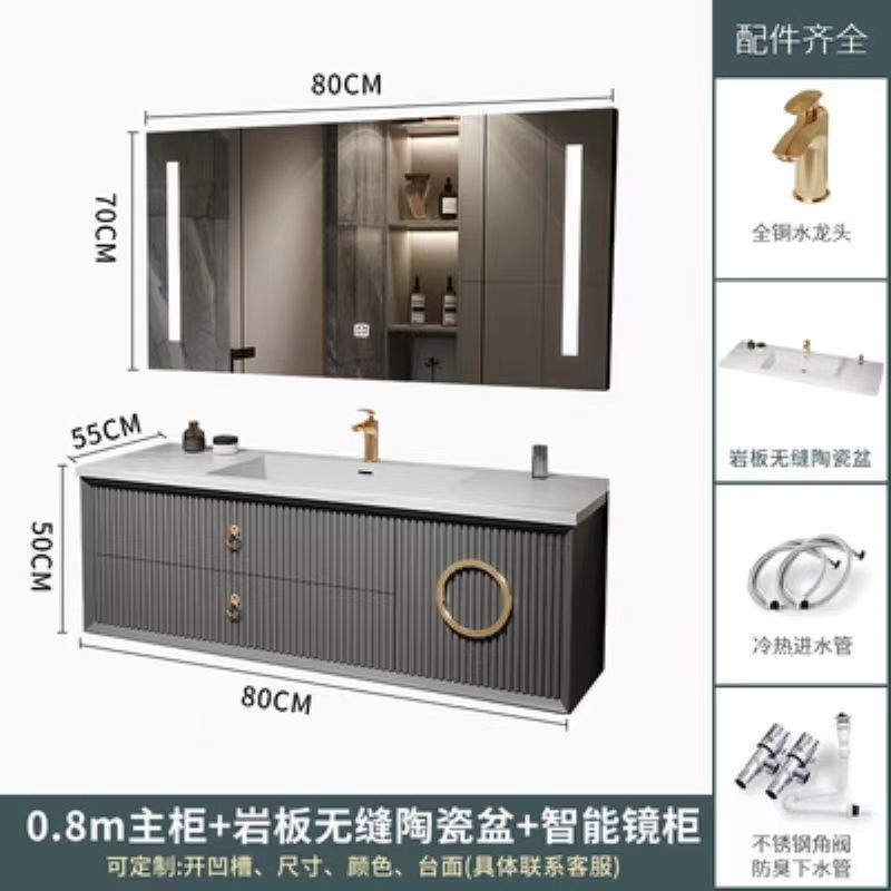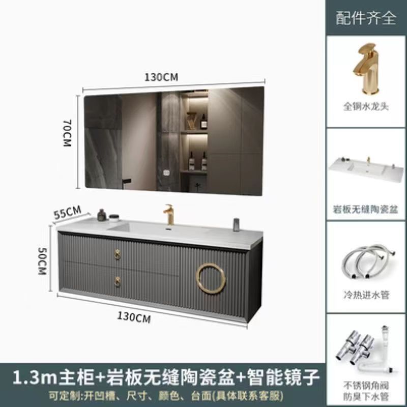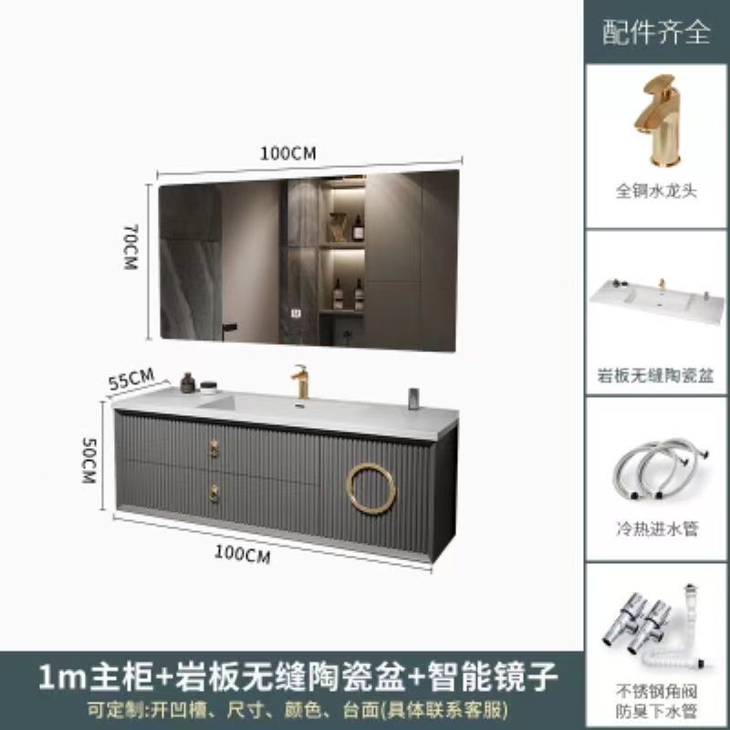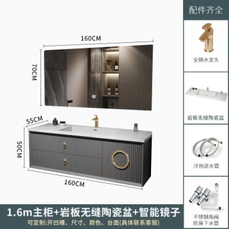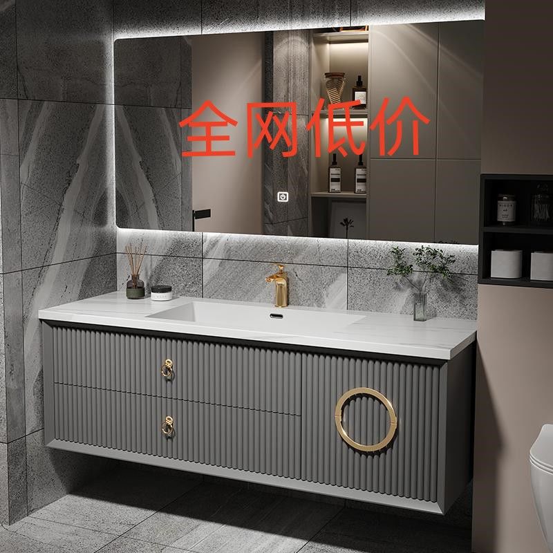 现代简约岩板无缝陶瓷一体盆浴室柜组合卫生间洗手洗脸盆柜洗漱台