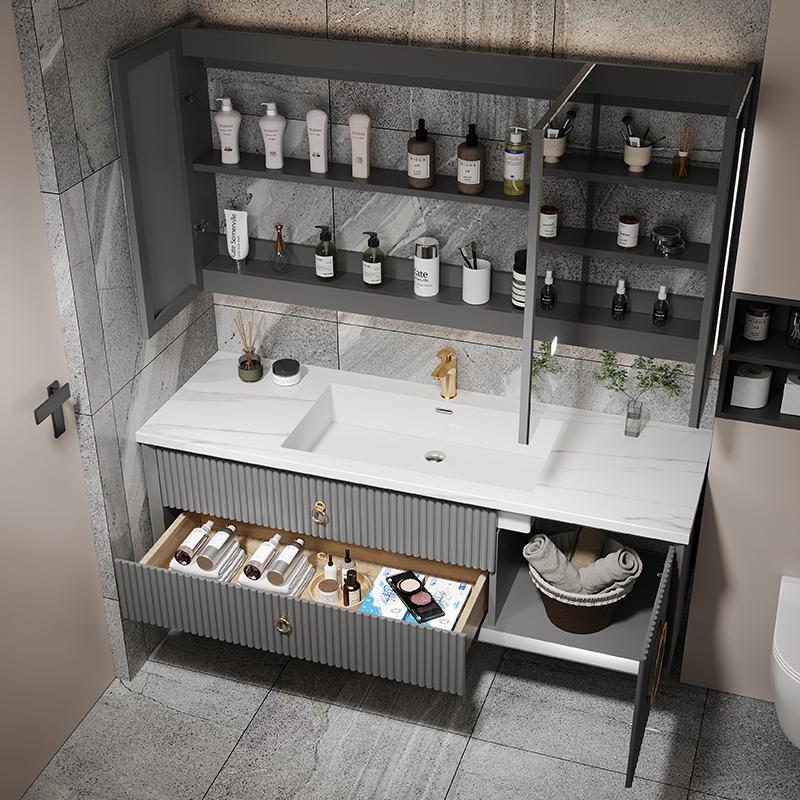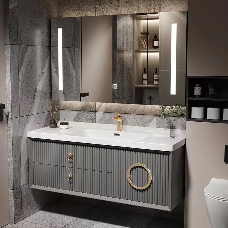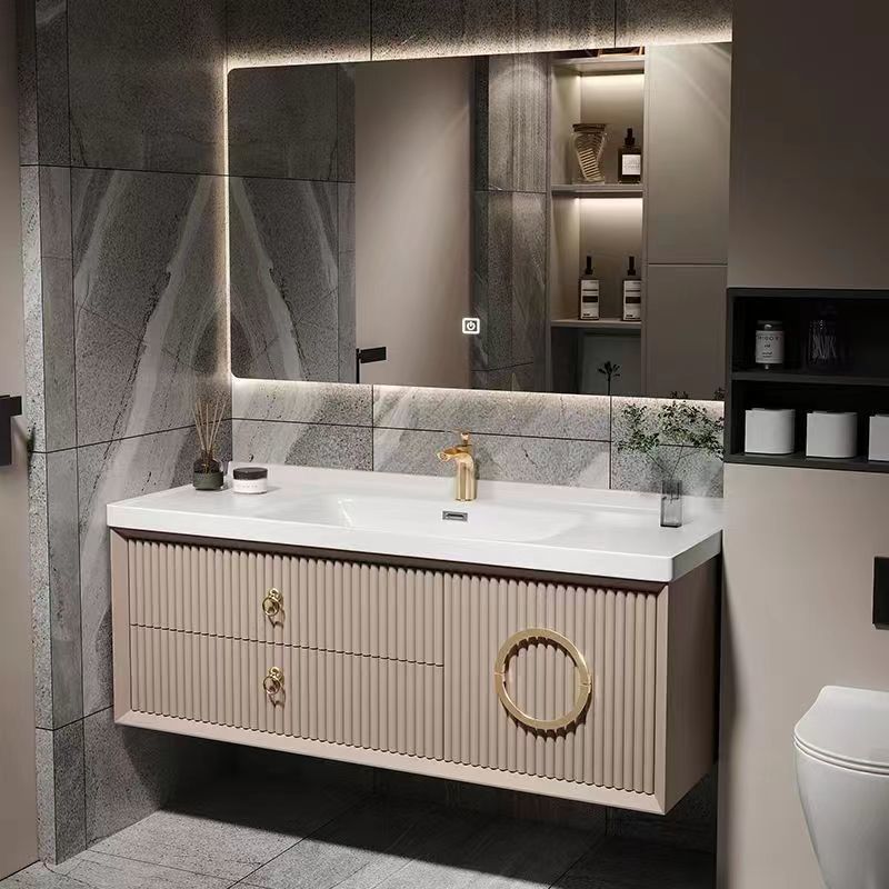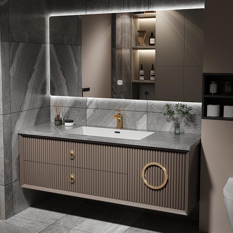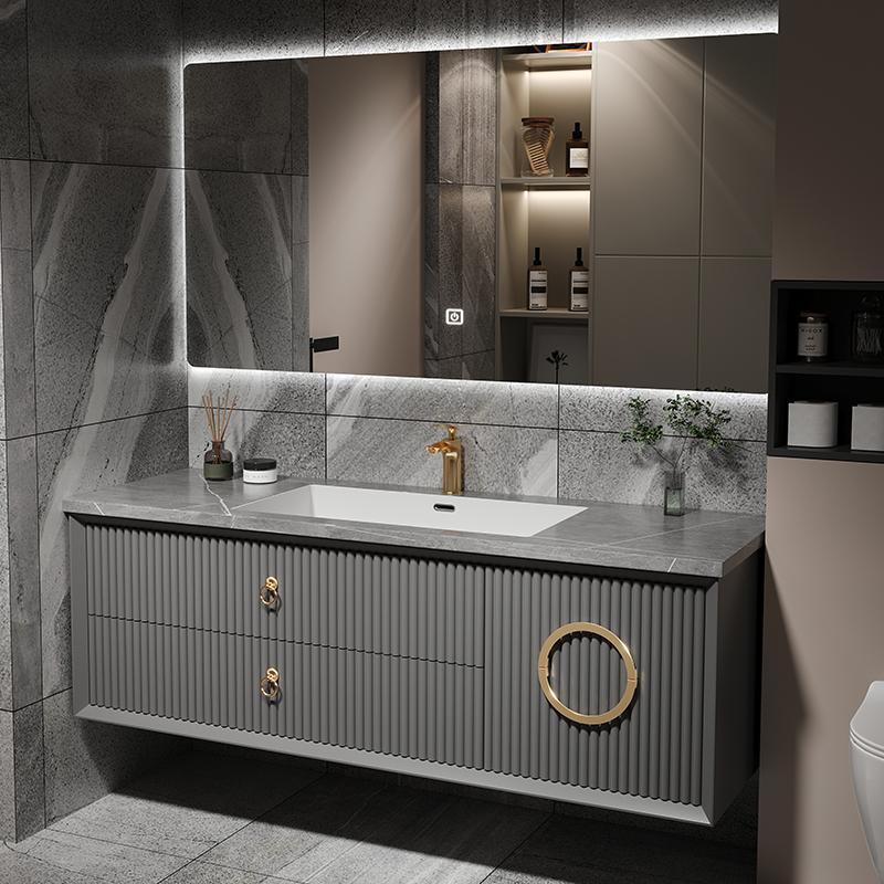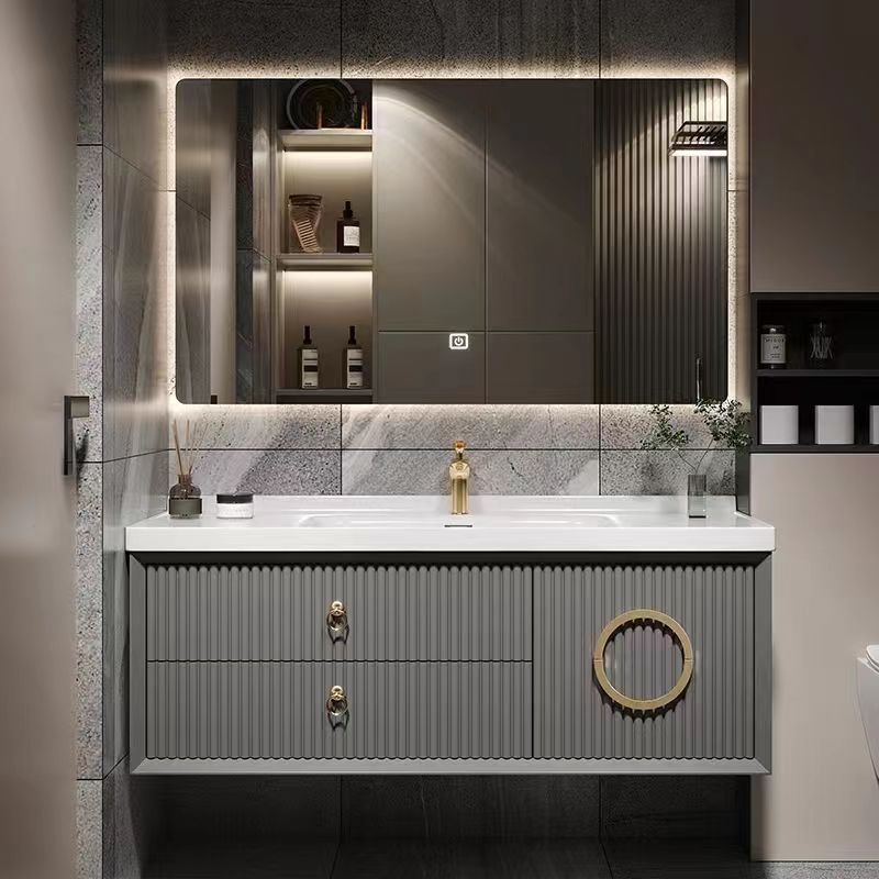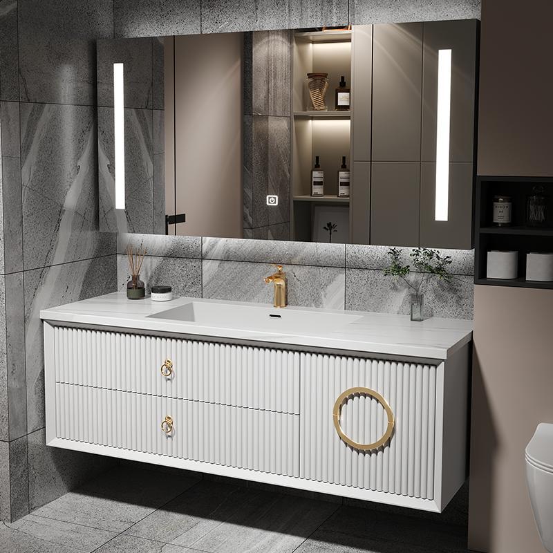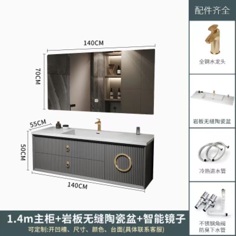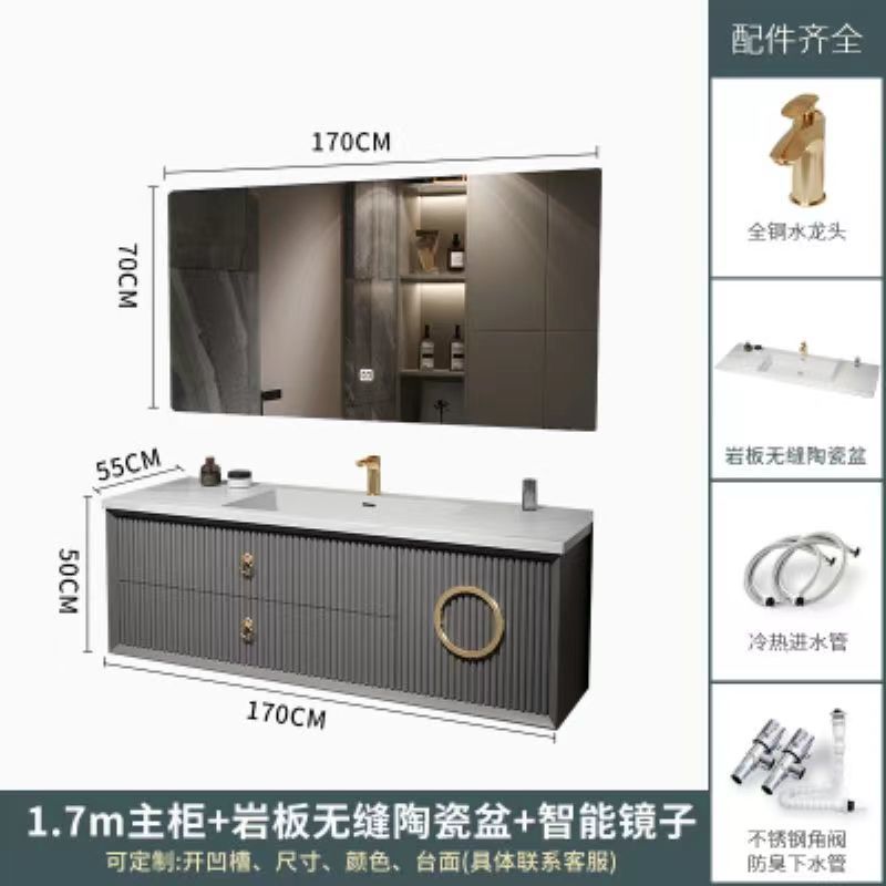 现代简约岩板无缝陶瓷一体盆浴室柜组合卫生间洗手洗脸盆柜洗漱台