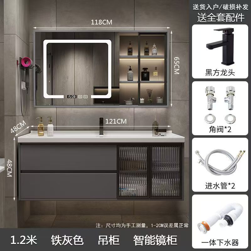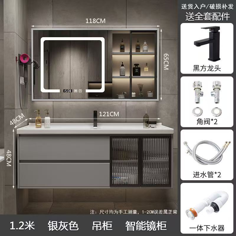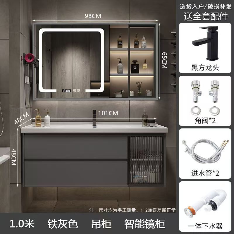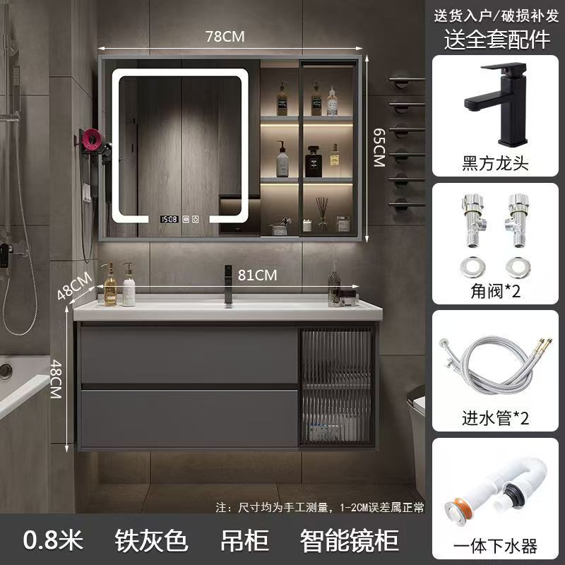 现代简约智能浴室柜洗漱卫生间实木洗手盆洗脸盆陶瓷轻奢一体组合