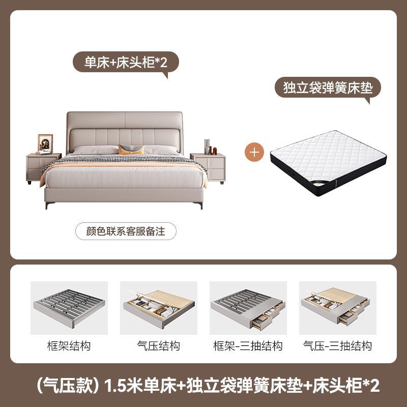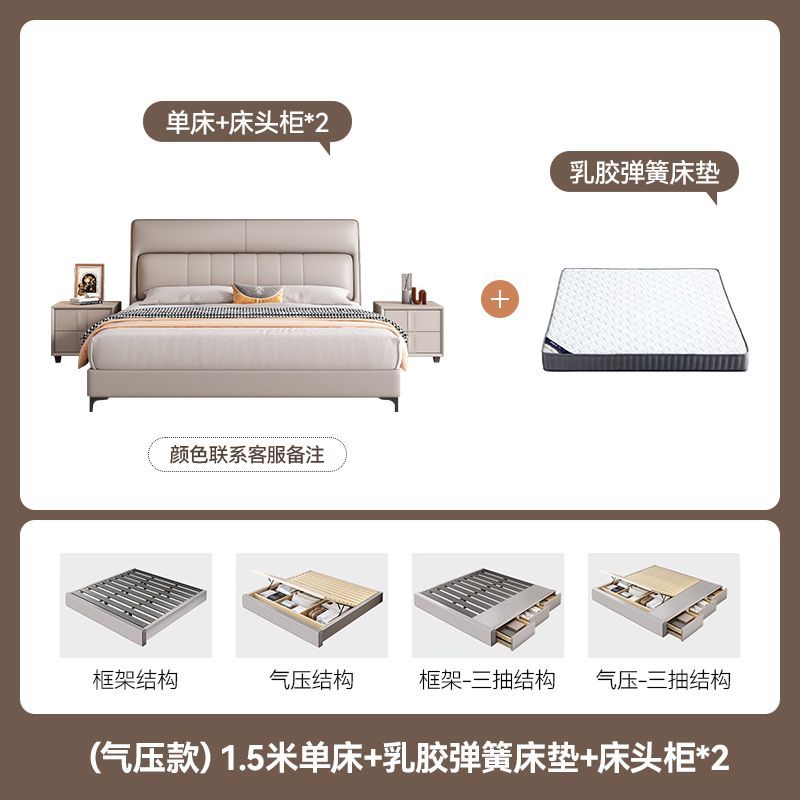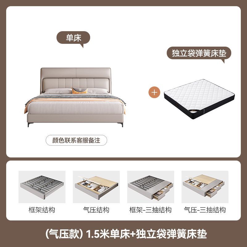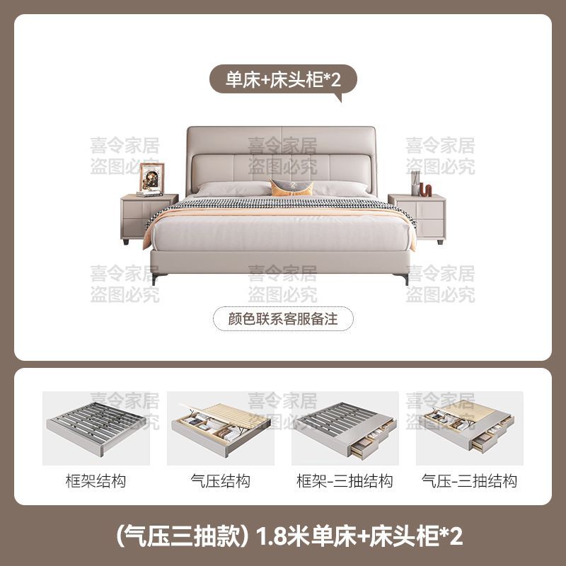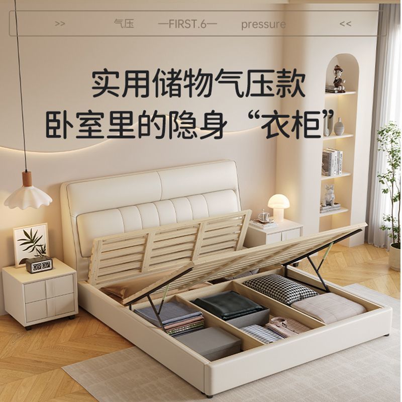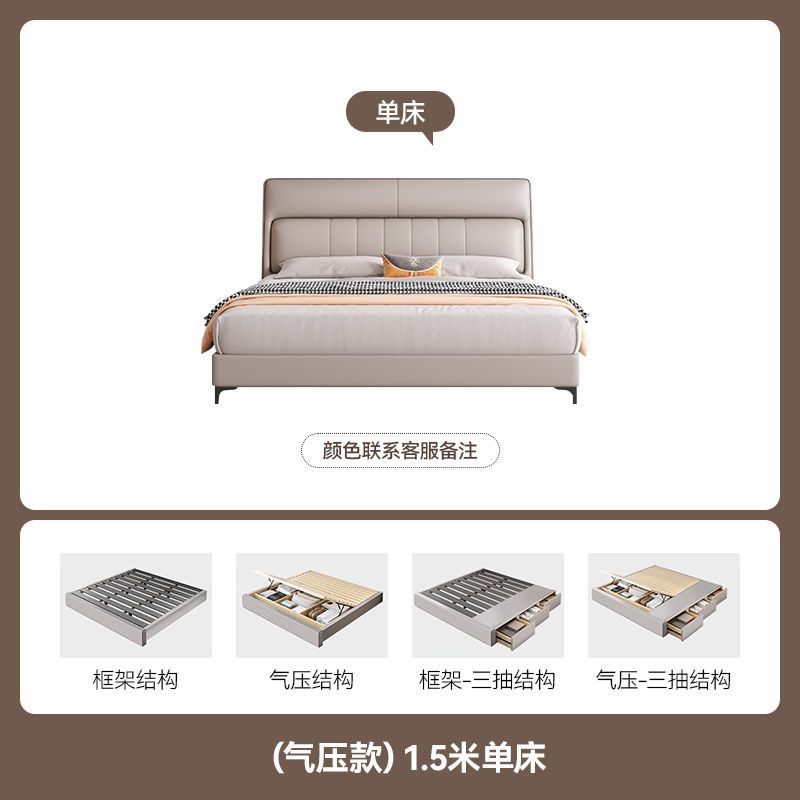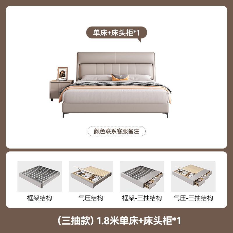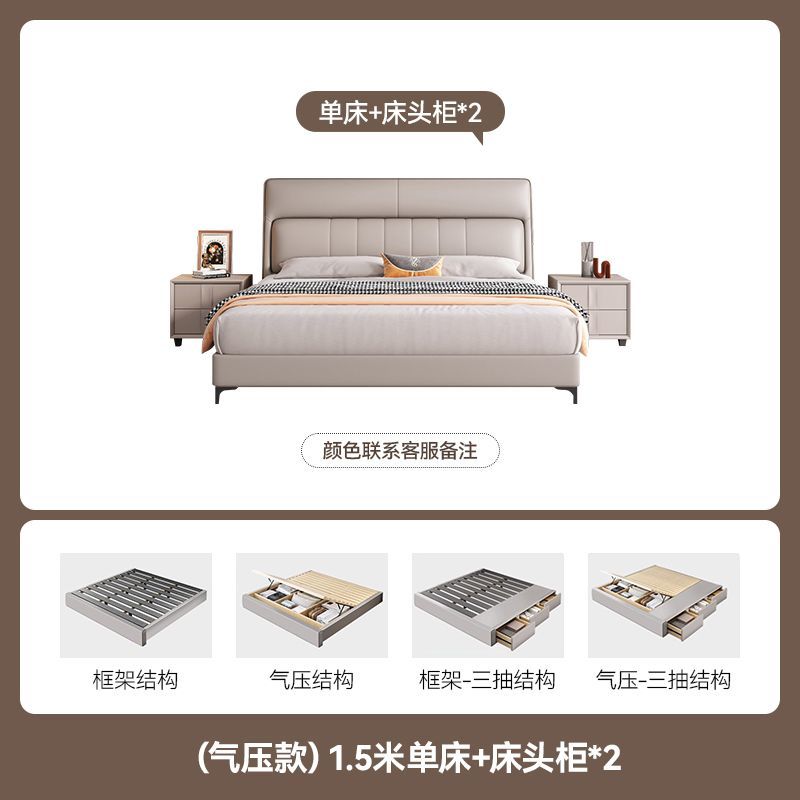现代简约纳帕皮床双人床小户型抽屉储物储物意式极简主卧大床婚床