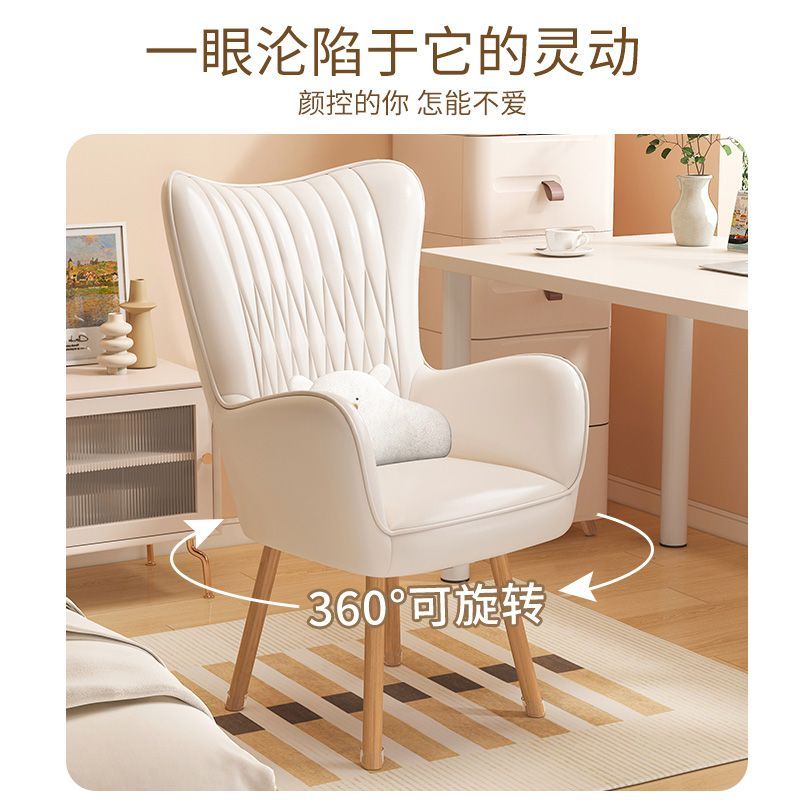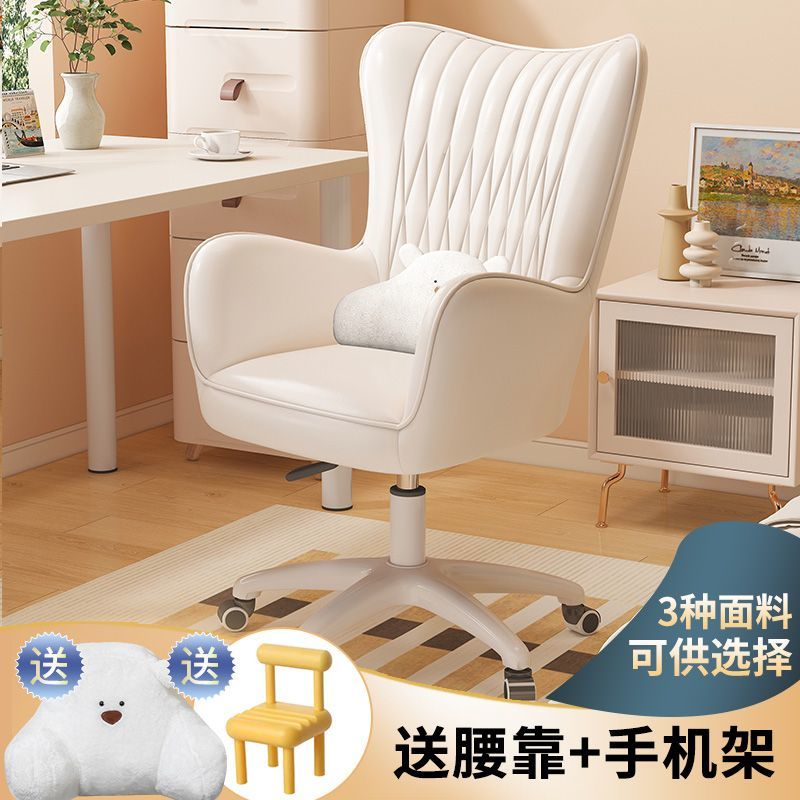 电脑椅家用舒适靠背奶油风宿舍椅子学习久坐舒服女生卧室办公转椅