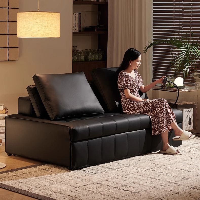 真皮书房沙发床小户型单人双人阳台客厅可折叠多功能两用抽拉床