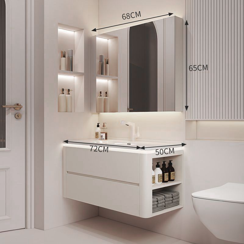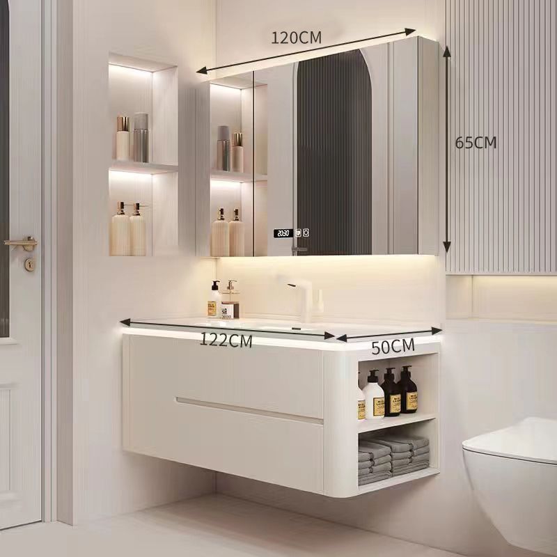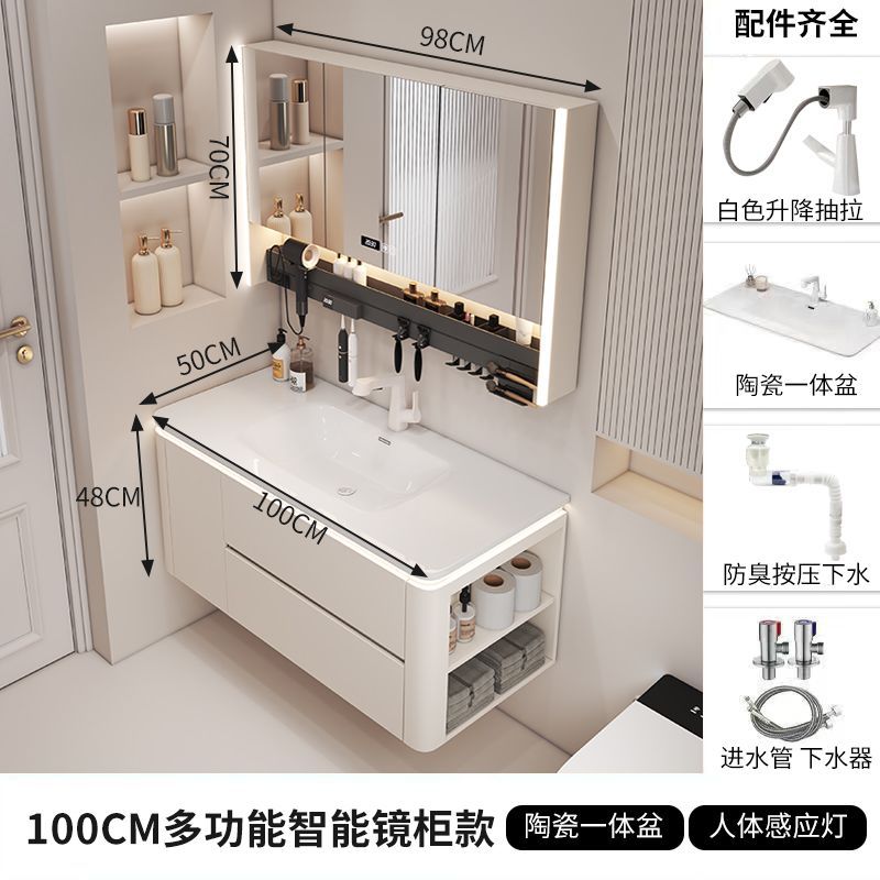 简约奶油风洗手台陶瓷一体盆现代卫生间智能实木浴室柜组合洗脸盆