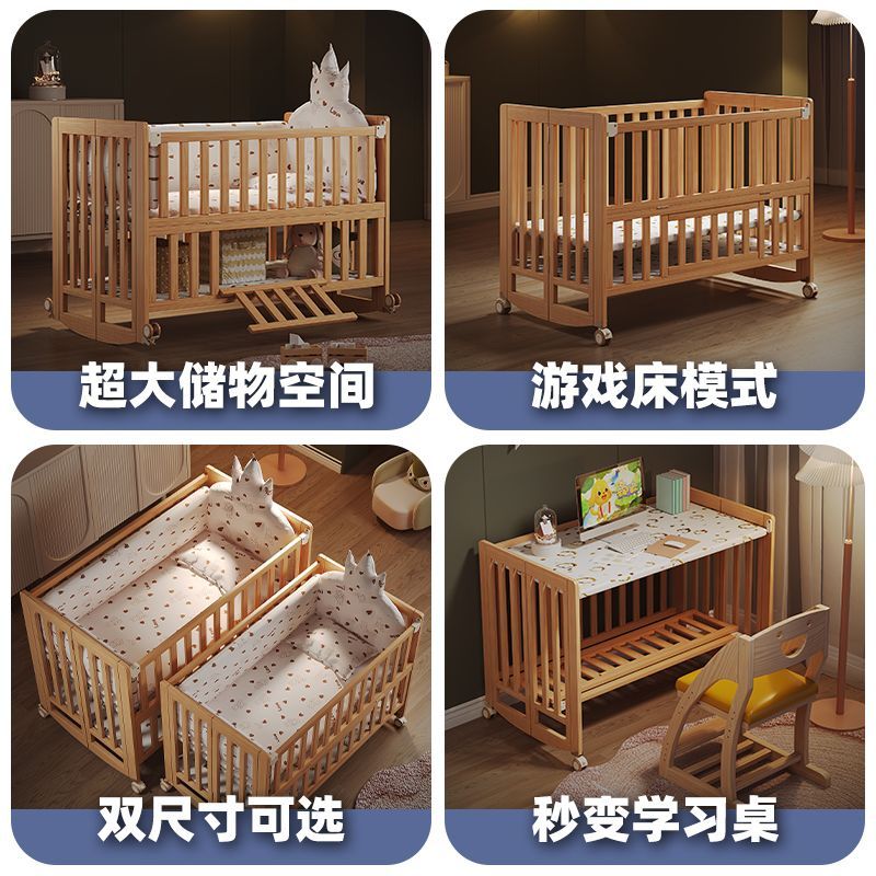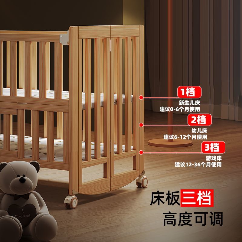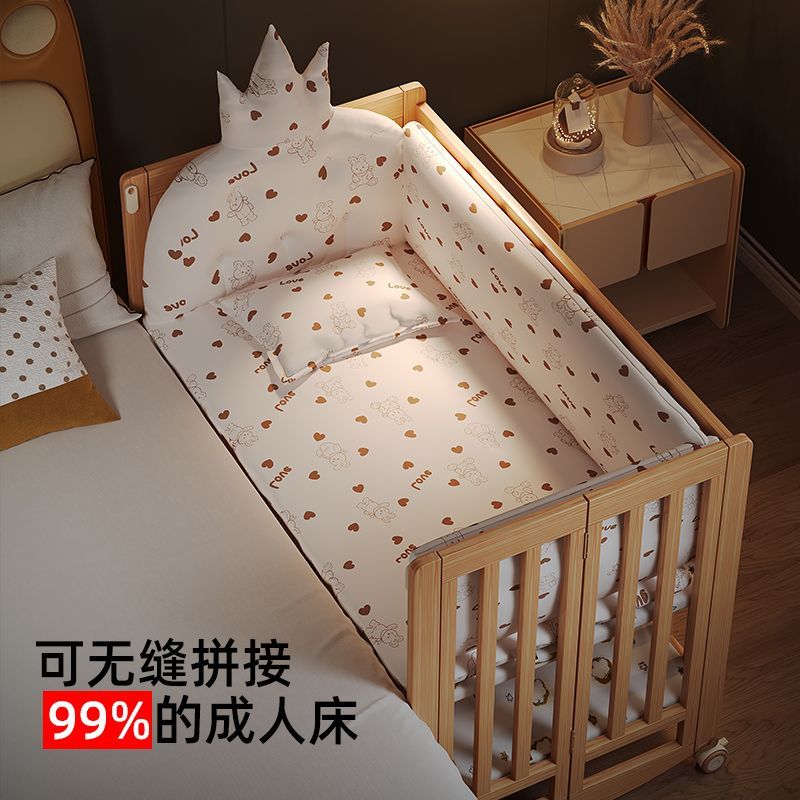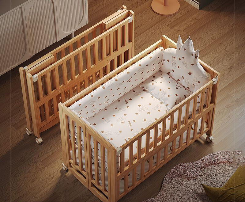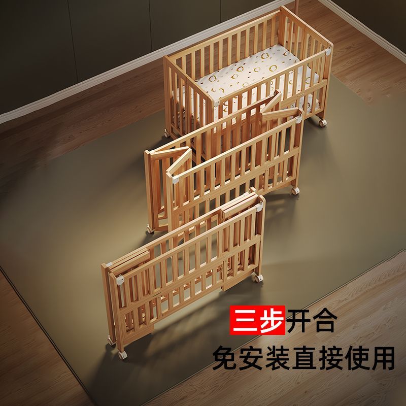 简魅婴儿床可折叠实木无漆多功能新生儿宝宝床可移动拼接大床