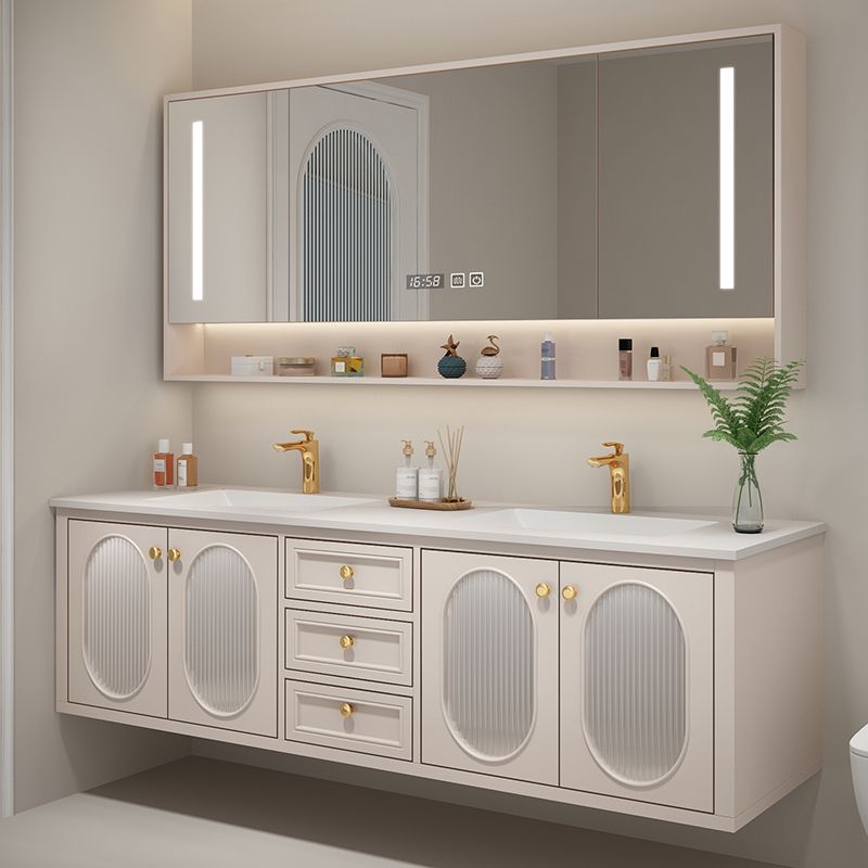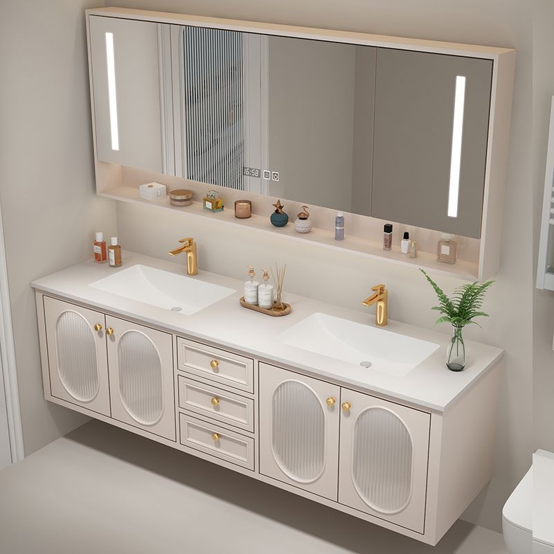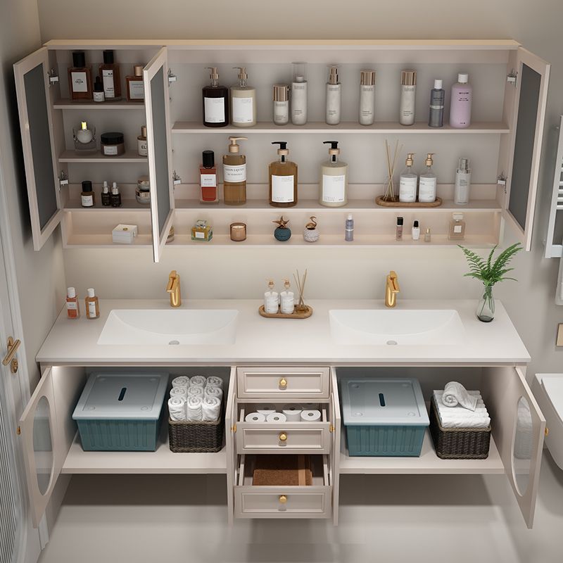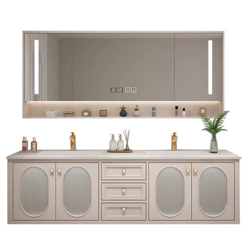 美式岩板陶瓷一体无缝洗脸盆浴室柜组合奶油风卫生间卫浴双盆吊柜