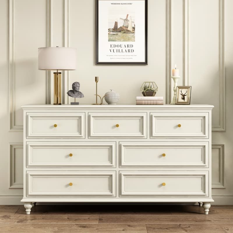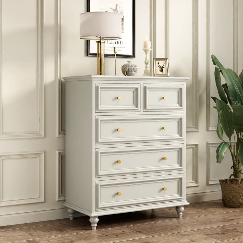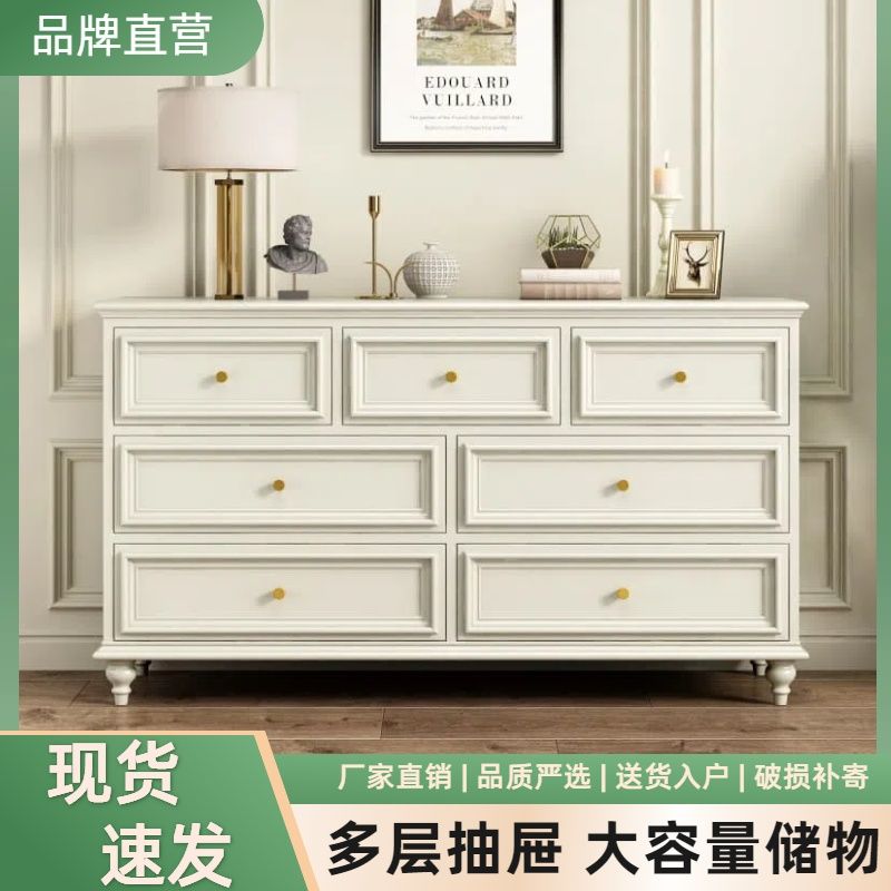 美式极简实木五斗柜卧室储物柜客厅轻奢高级感白色床尾柜收纳柜子