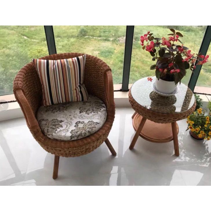藤椅阳台小桌椅休闲藤椅单人靠背椅茶几组合藤编椅子客厅家用落地
