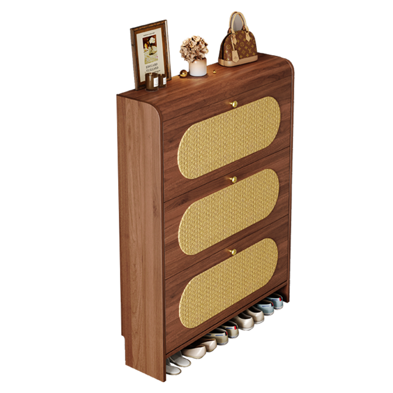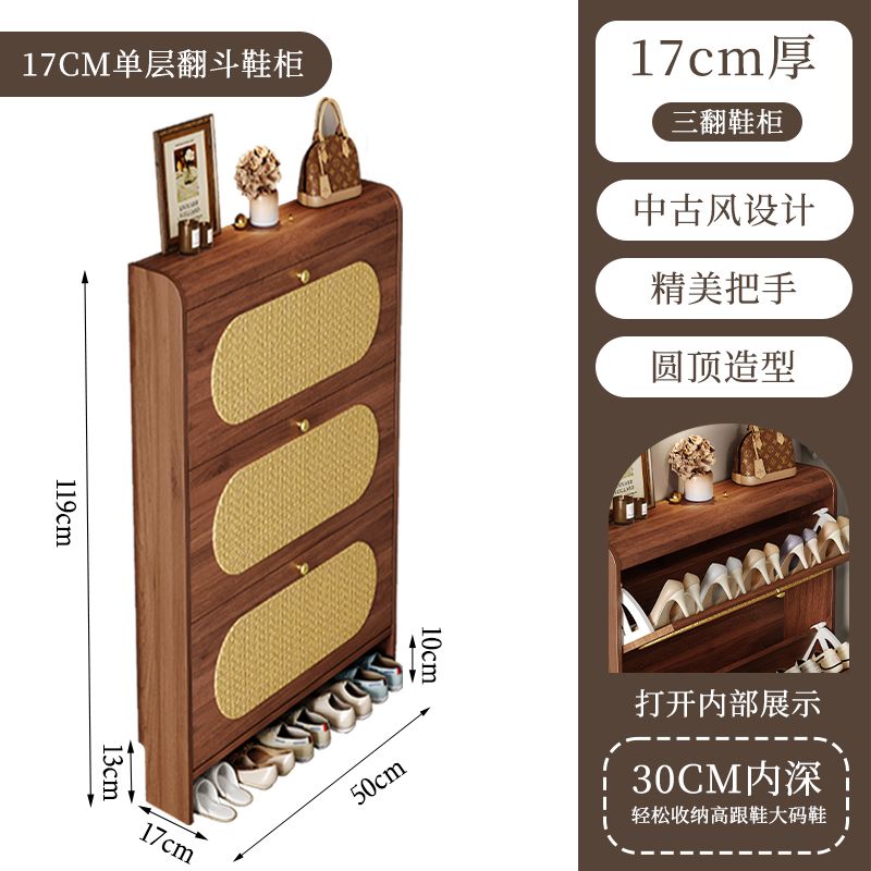 藤编现代超薄翻斗鞋柜家用门口进门靠墙入户玄关大容量收纳储物柜