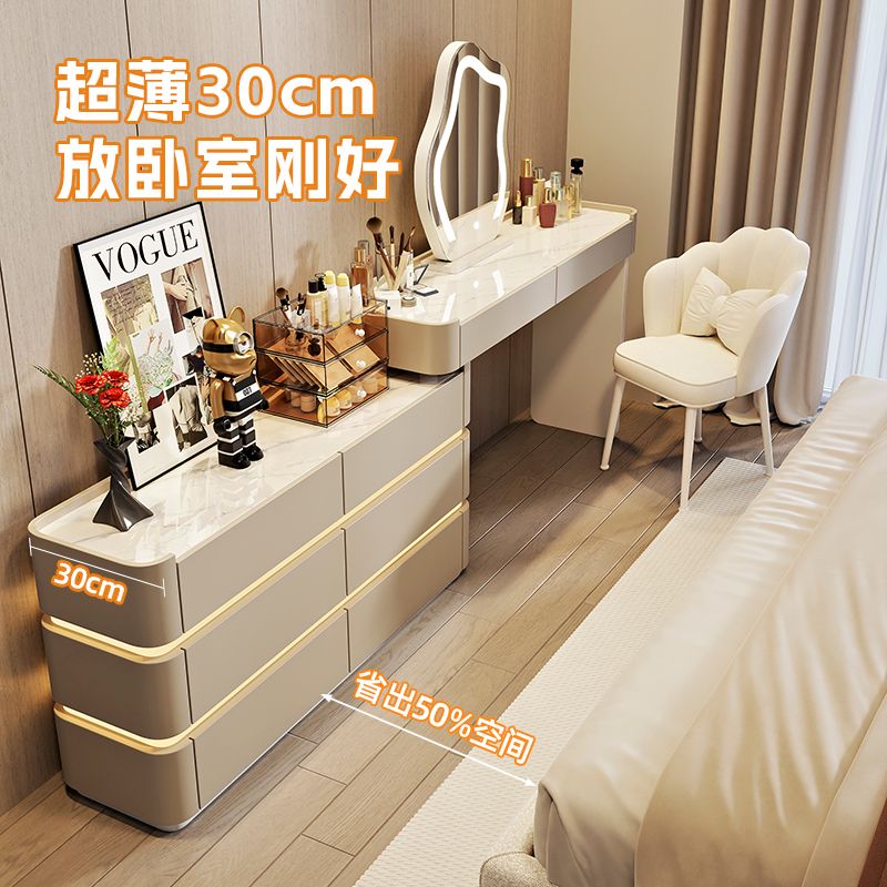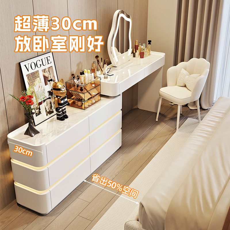 超窄30cm梳妆台斗柜一体卧室床尾柜超薄极窄化妆台奶油风收纳柜