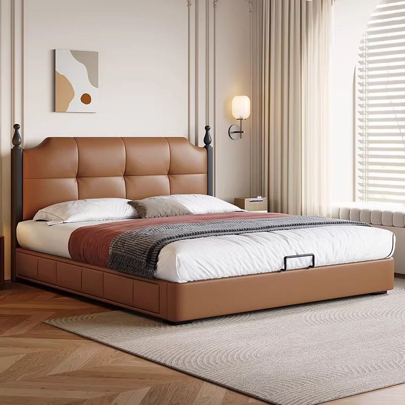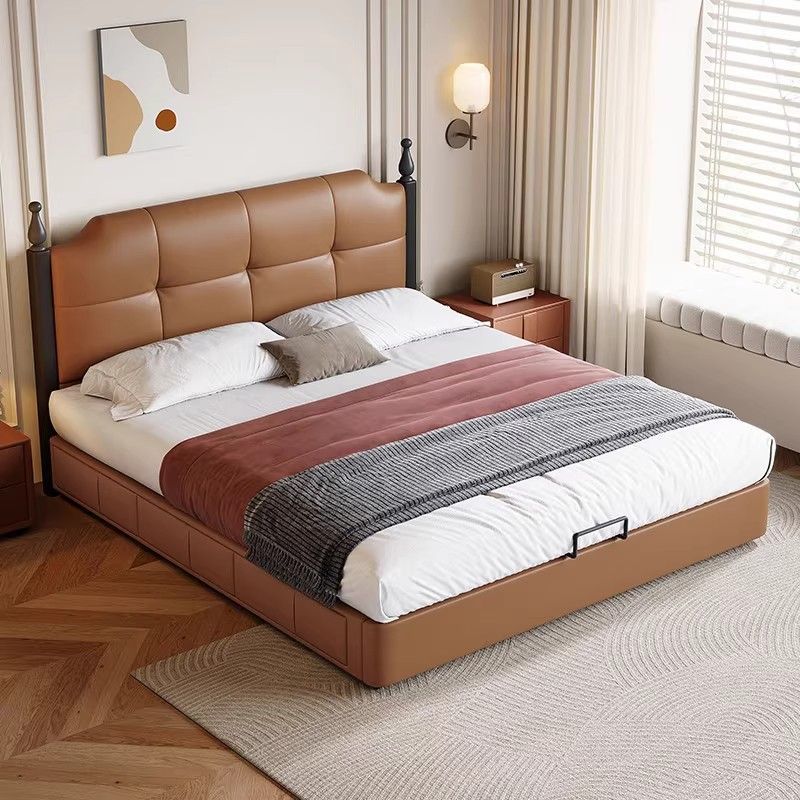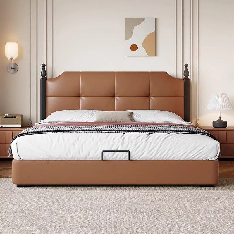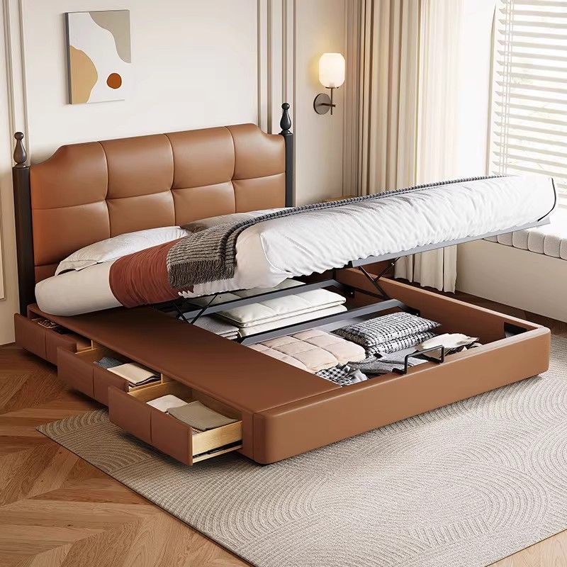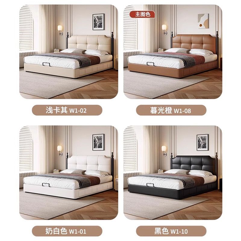 轻奢中古风1.5米小户型1.8米主卧抽屉储物收纳真皮床意式软靠大床