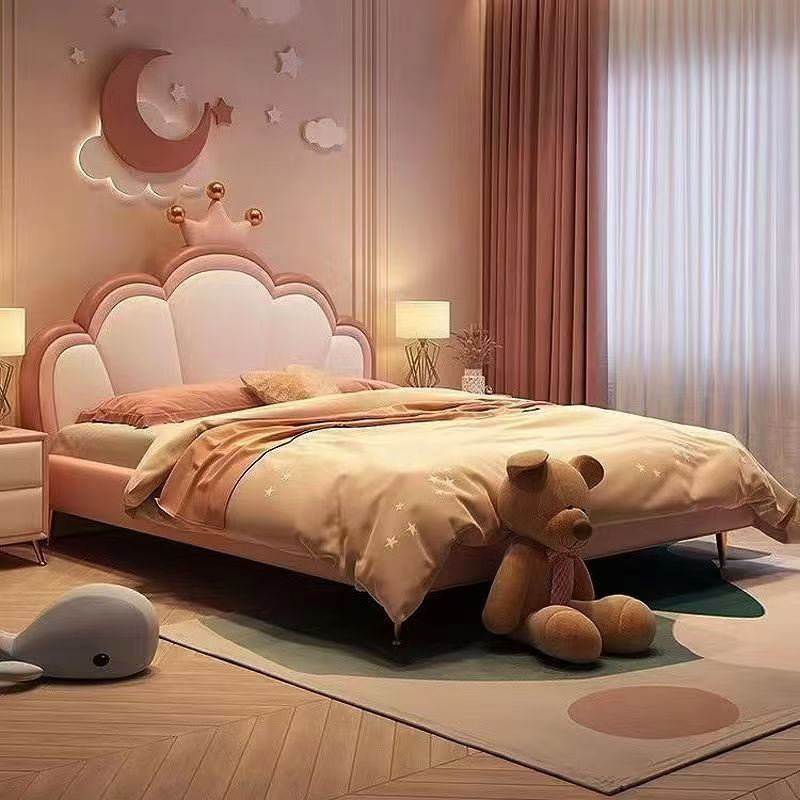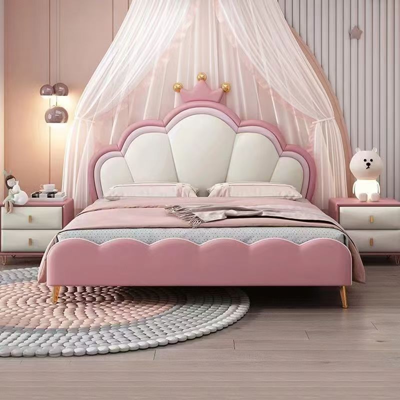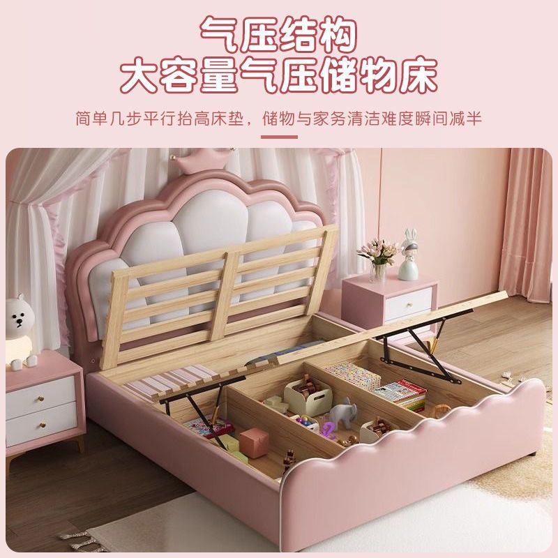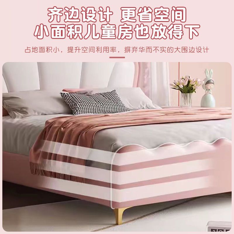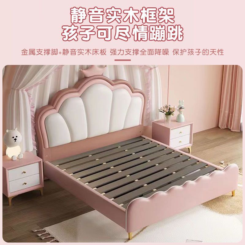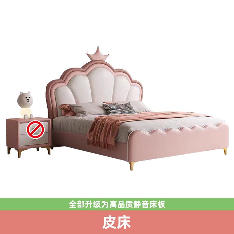 轻奢公主床皇冠青少年儿童床创意网红床粉色单人皮艺公主床儿童床