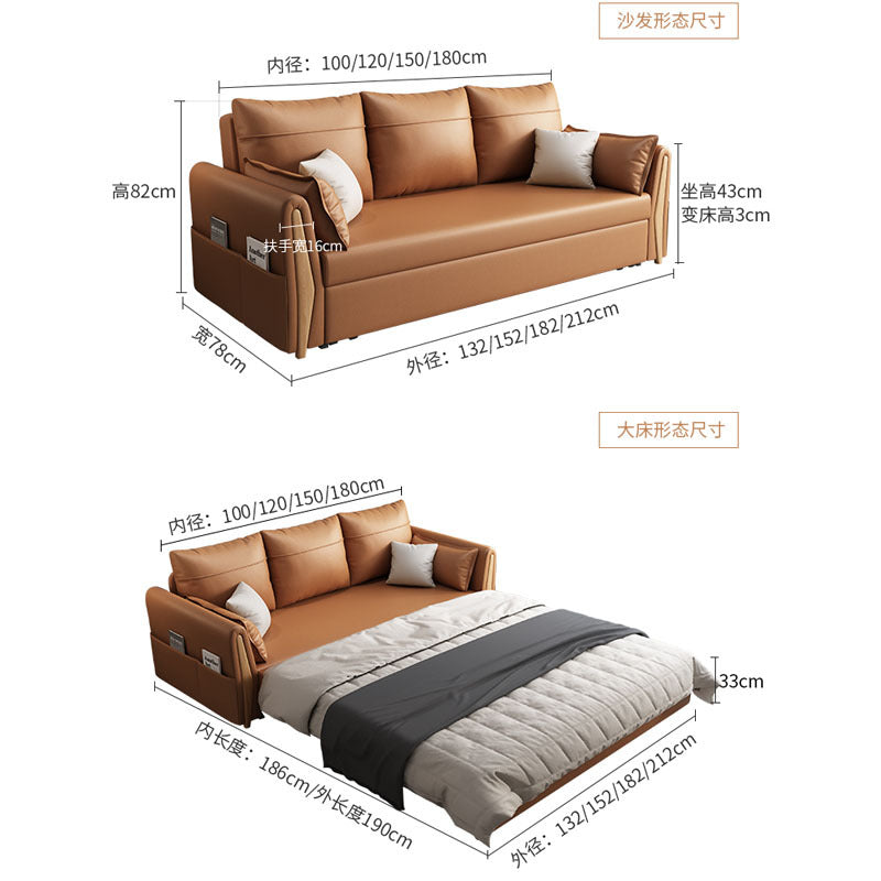 轻奢单双人两用沙发床 客厅小户型科技布乳胶储物多功能抽拉沙发