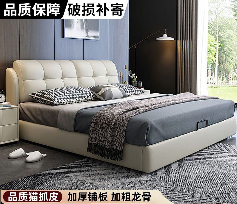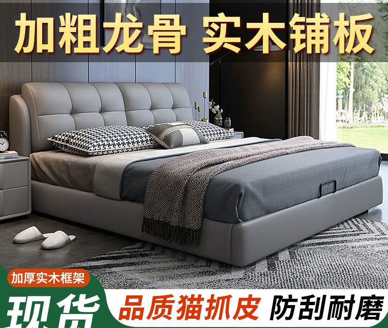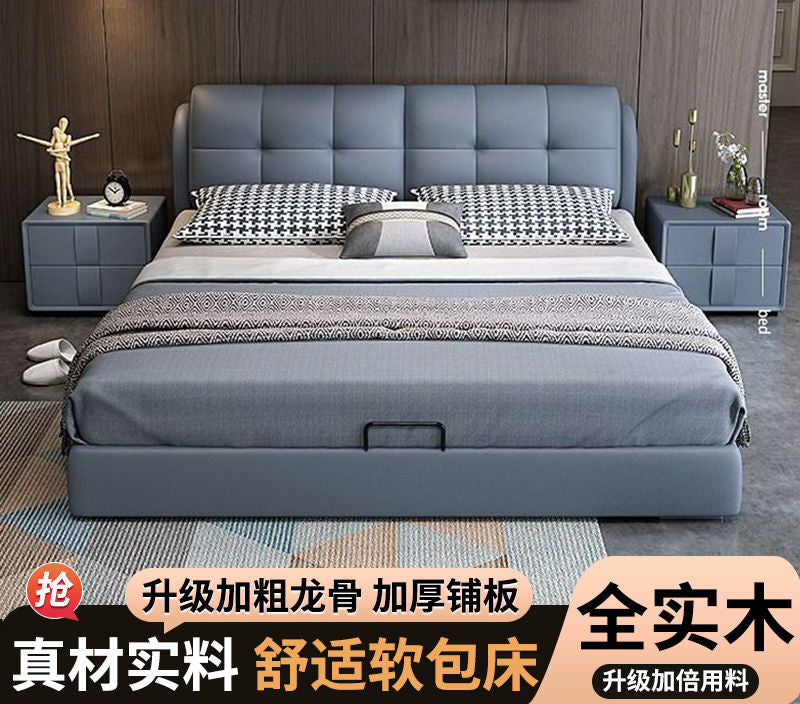 轻奢实木皮床软包床1.8x2米主卧大床家用双人床出租房1.5米单人床