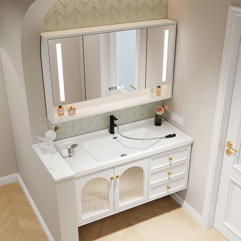 轻奢简约田园风家用实木浴室柜组合卫生间陶瓷一体盆洗手洗脸盆柜