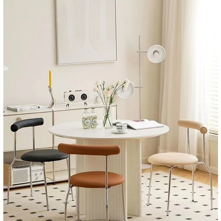 轻奢餐椅中古风家用靠背椅简约奶茶店家用网红椅奶油风蛋卷椅极简