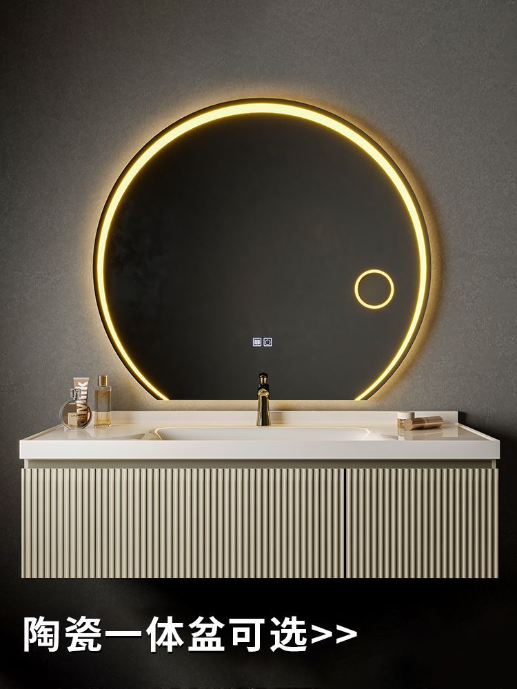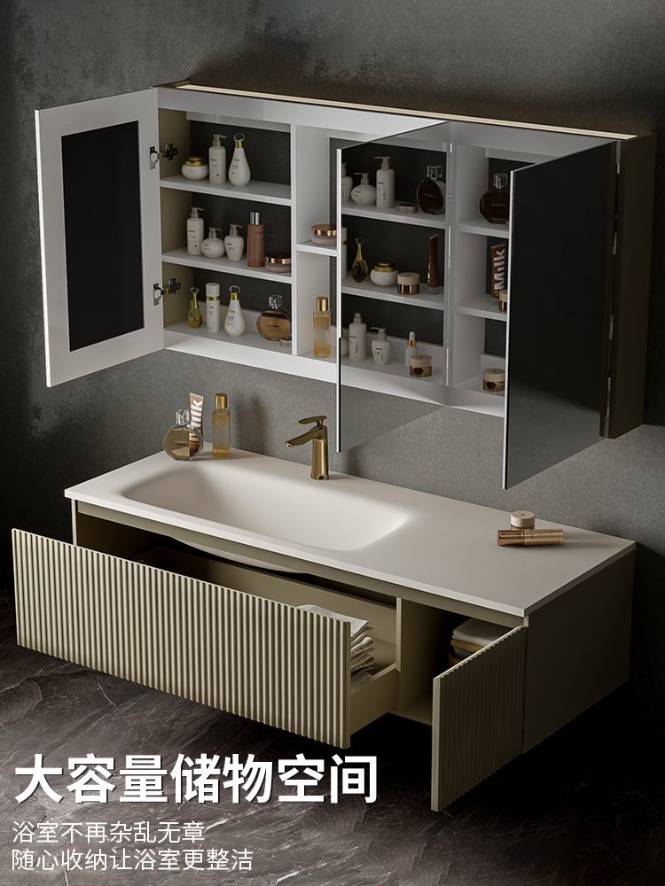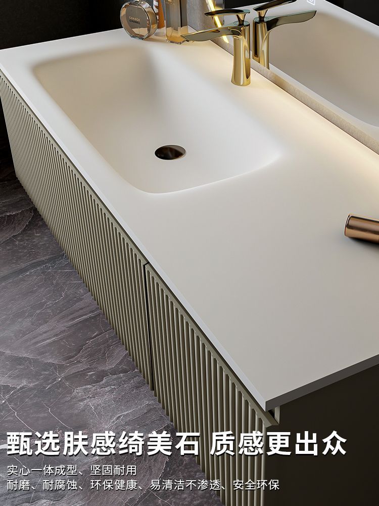 酒店风浴室柜洗手盆组合一体式橡木洗手盆组合吊柜肤感陶瓷一体盆