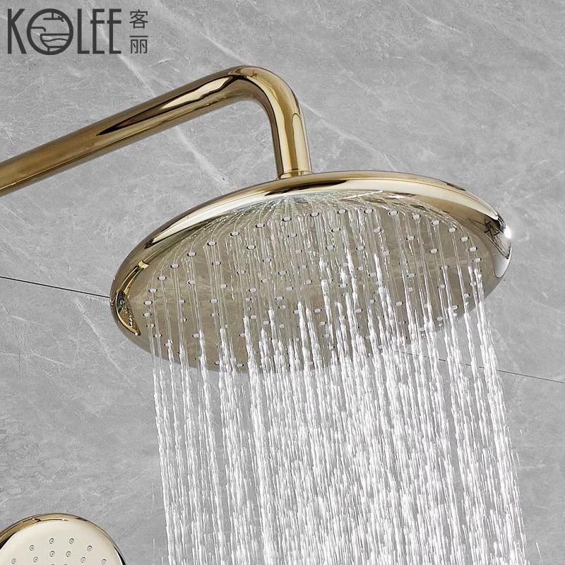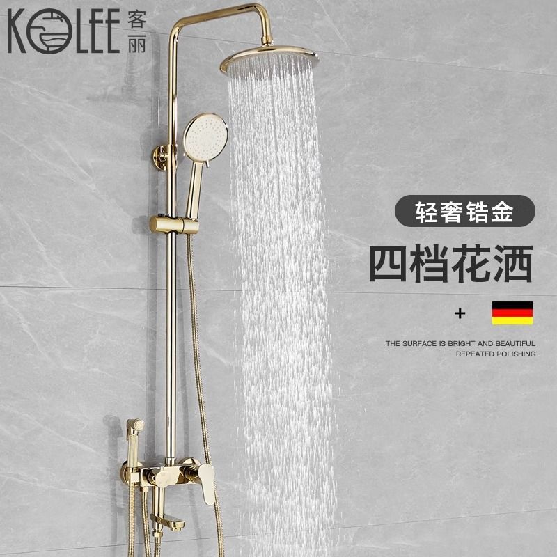 金色淋浴花洒套装家用全铜体欧式浴室花洒恒温龙头沐浴器淋雨套装