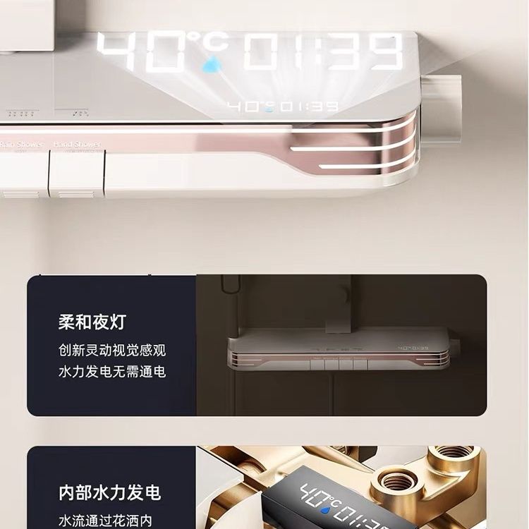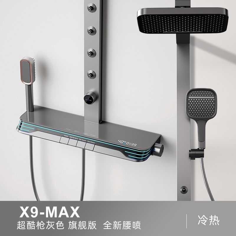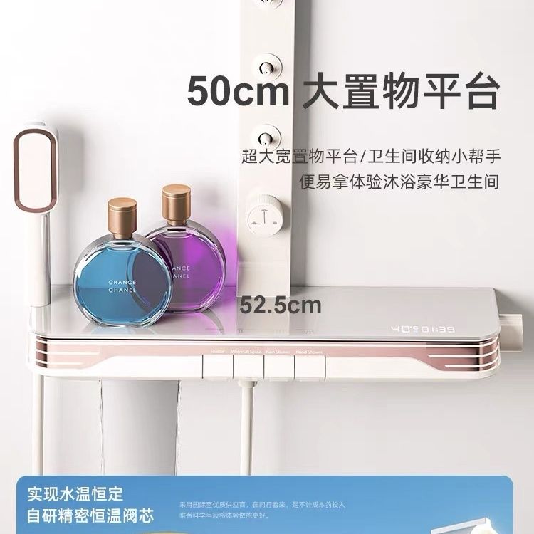 钢琴键恒温智能数显超大置物贴墙式安装腰喷淋浴按摩神器花洒套装