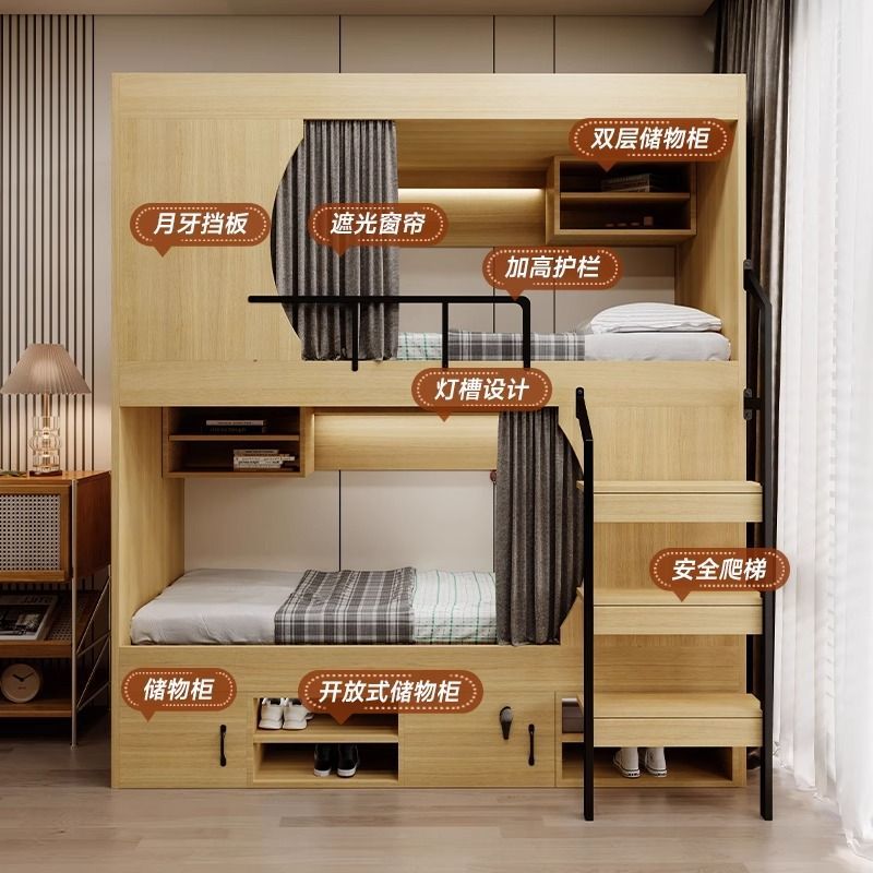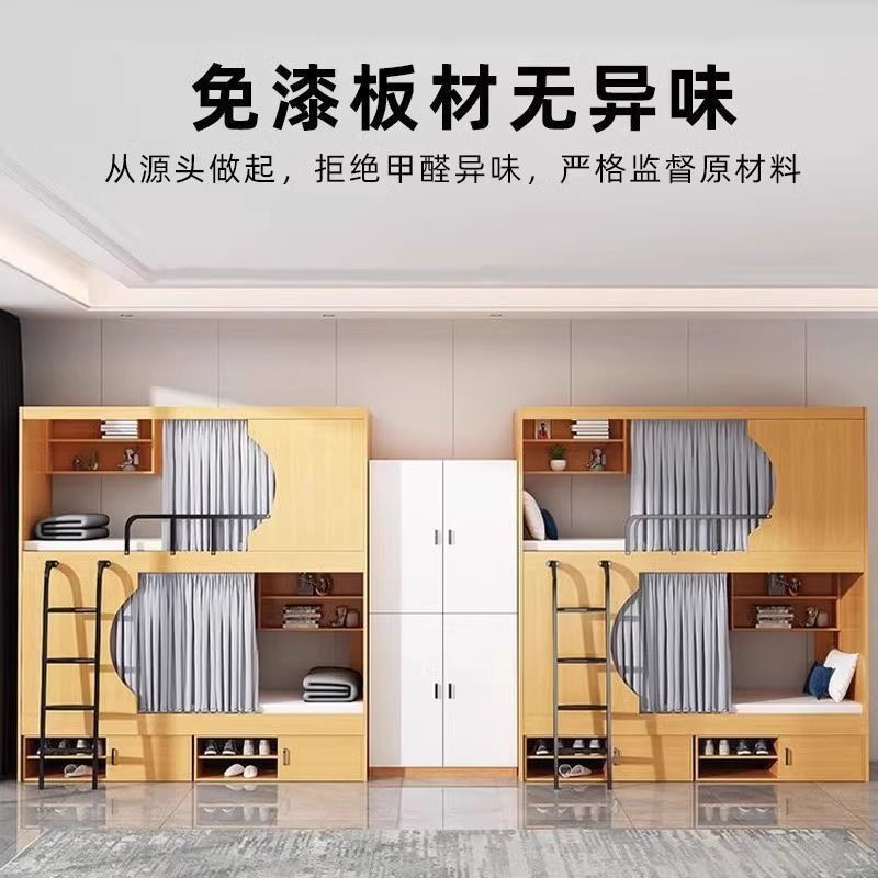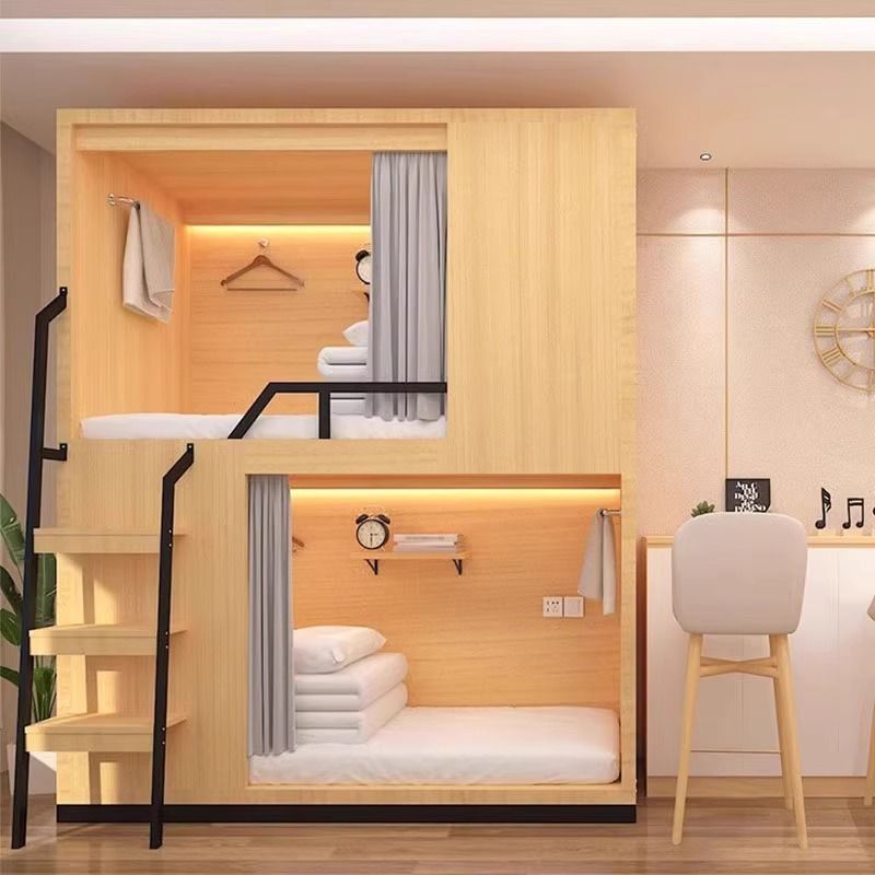 青旅民宿公寓高低床学生宿舍实木上下铺电竞酒店太空舱定制床两层