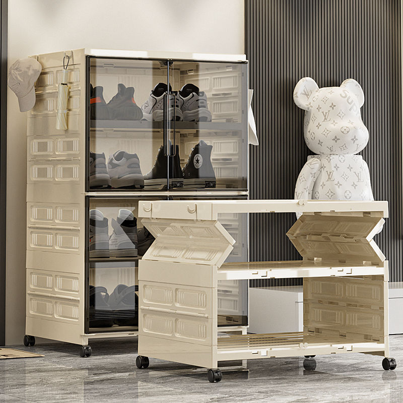 鞋柜折叠免安装入户门靠墙边收纳柜多层鞋架家用门口透明防尘鞋盒