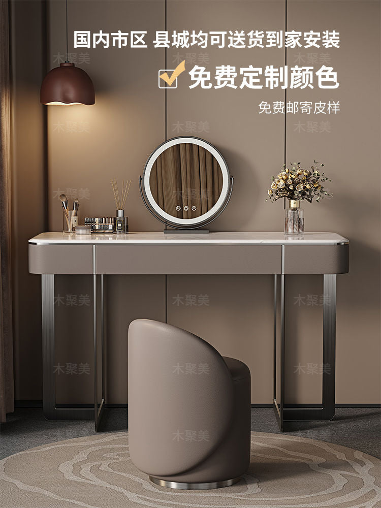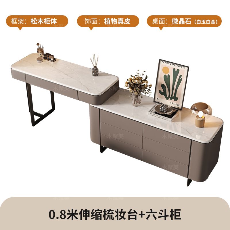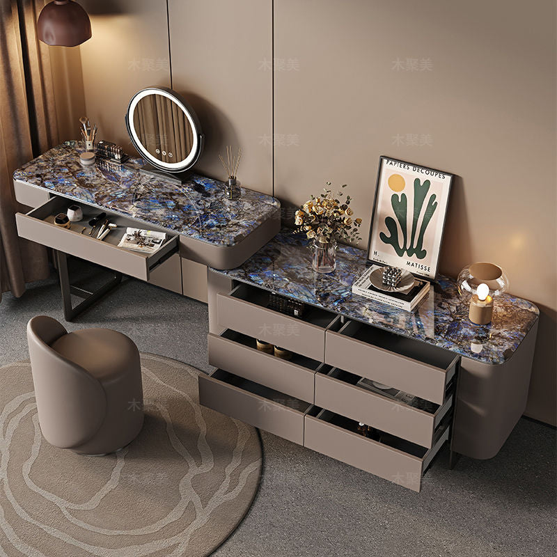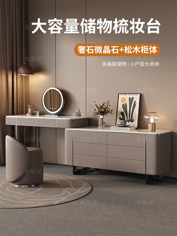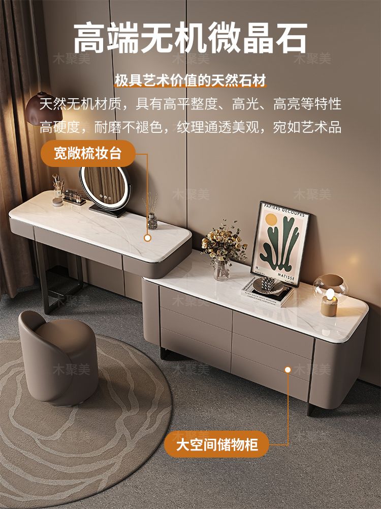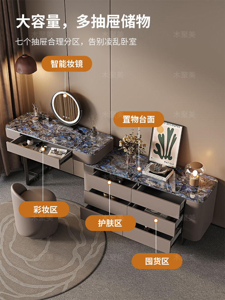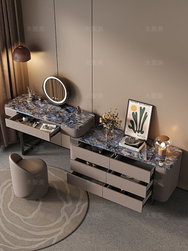 高档奢石卧室梳妆台斗柜一体设计师原创现代轻奢床尾化妆桌子新款