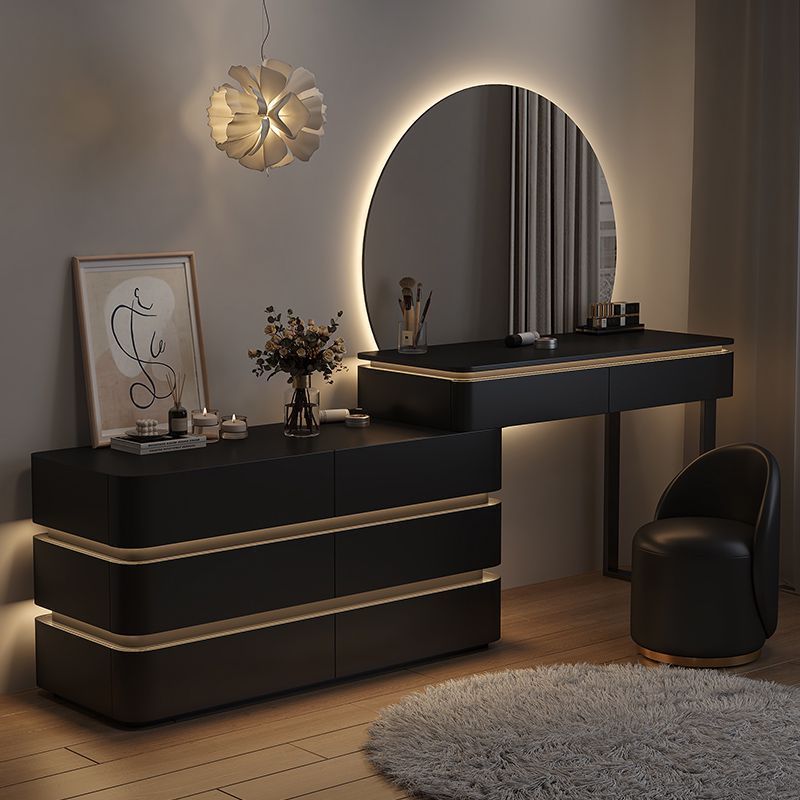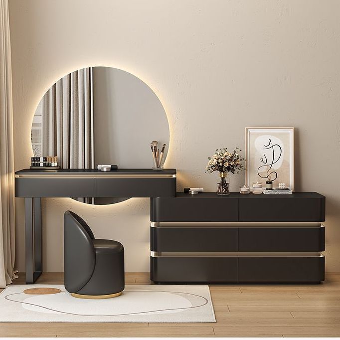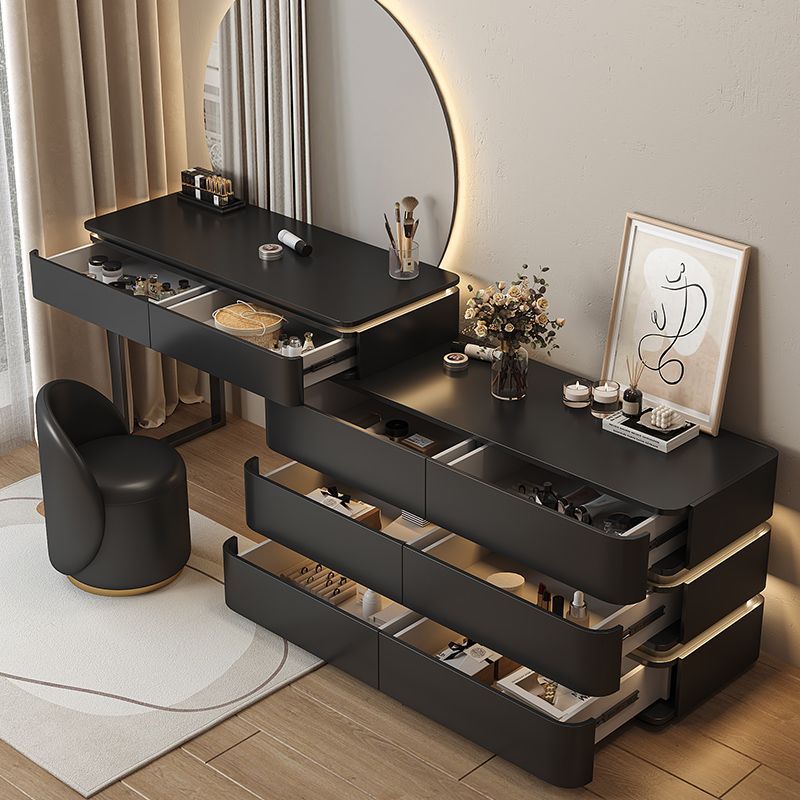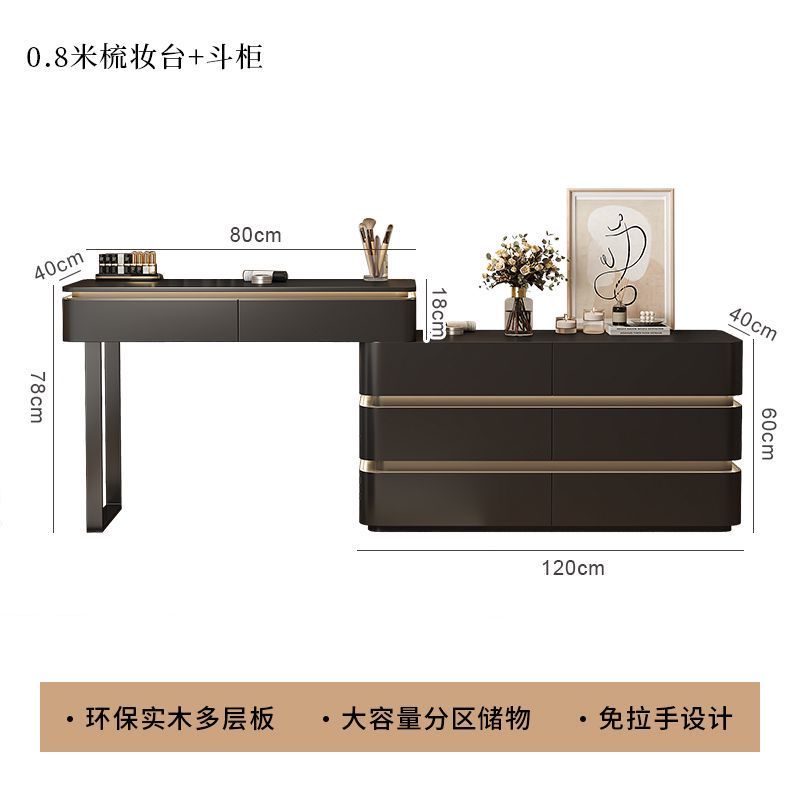 黑色梳妆台主卧简约现代2024新款轻奢实木收纳床尾化妆桌一体斗柜