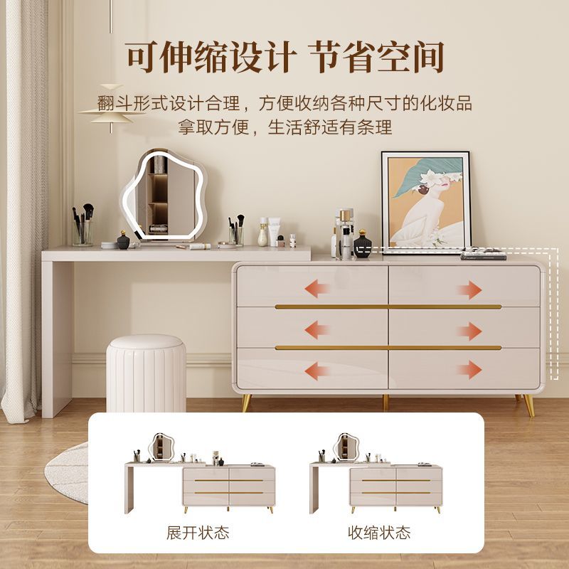 2025新款现代简约卧室梳妆台房间化妆桌斗柜一体靠墙收纳柜储物柜