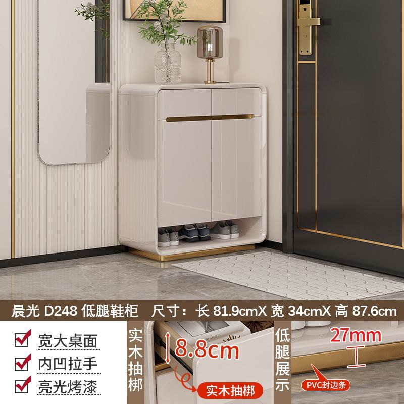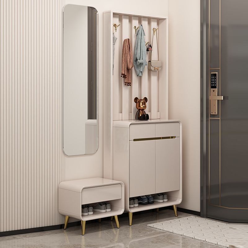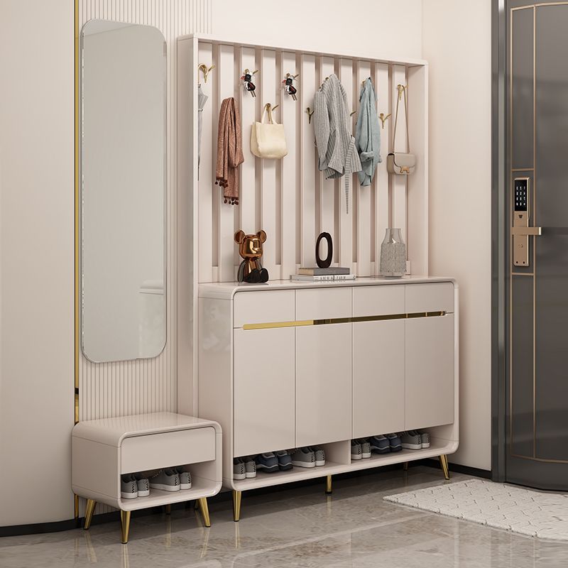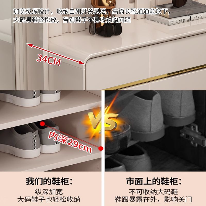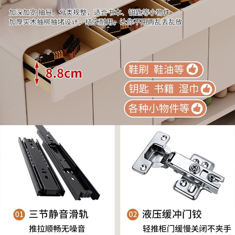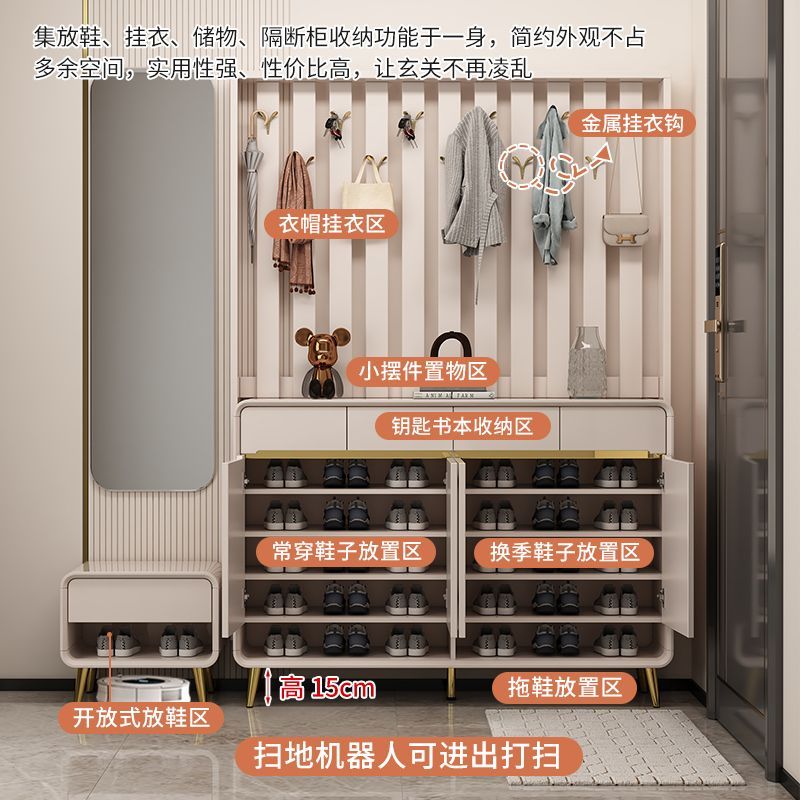 2025新款鞋柜挂衣架斗柜一体储物柜靠墙衣帽架简约奶油多层大容量