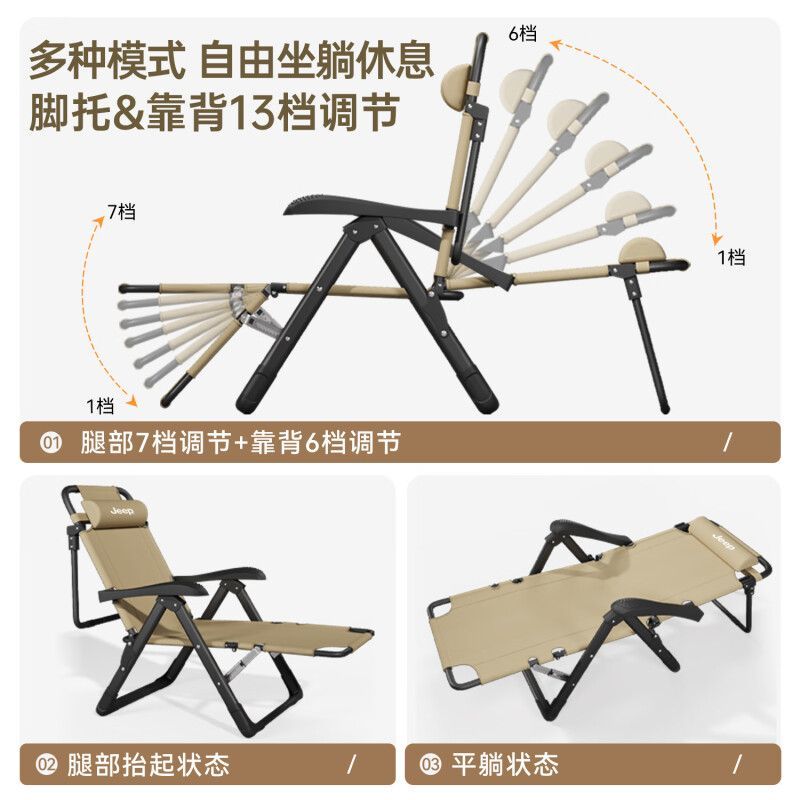 JEEP吉普户外折叠床折叠躺椅午休午睡露营折叠椅便携办公室可折叠