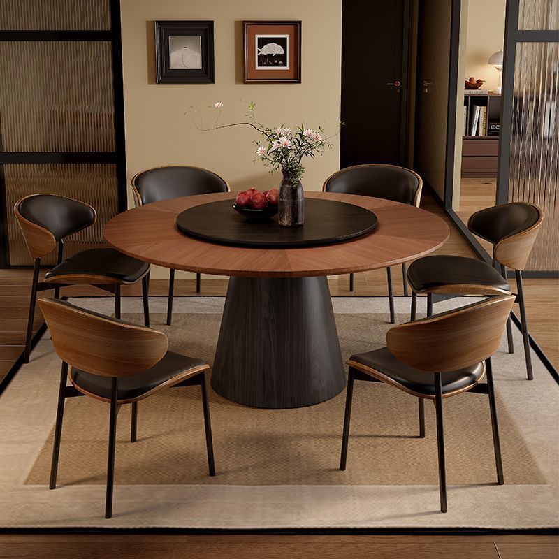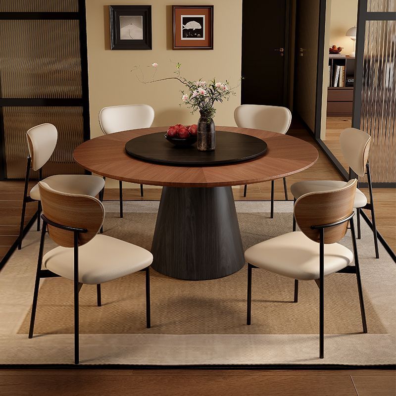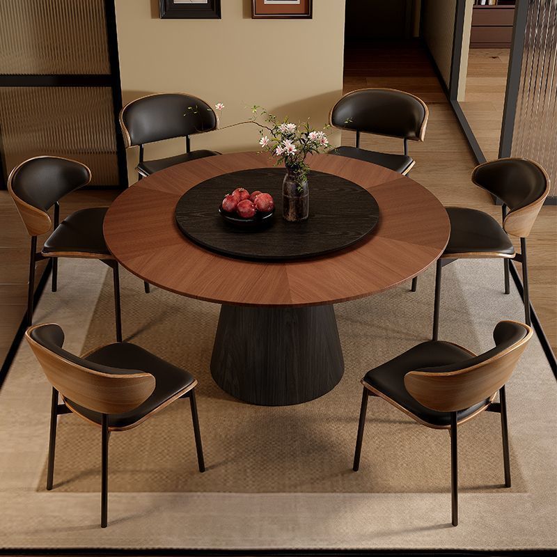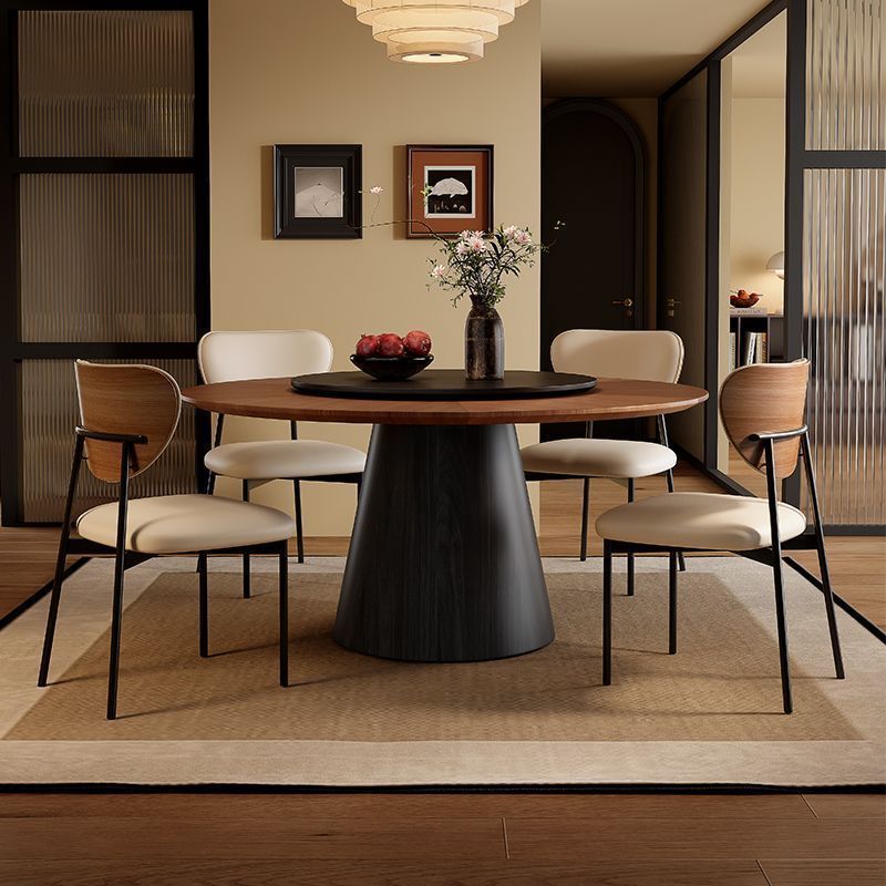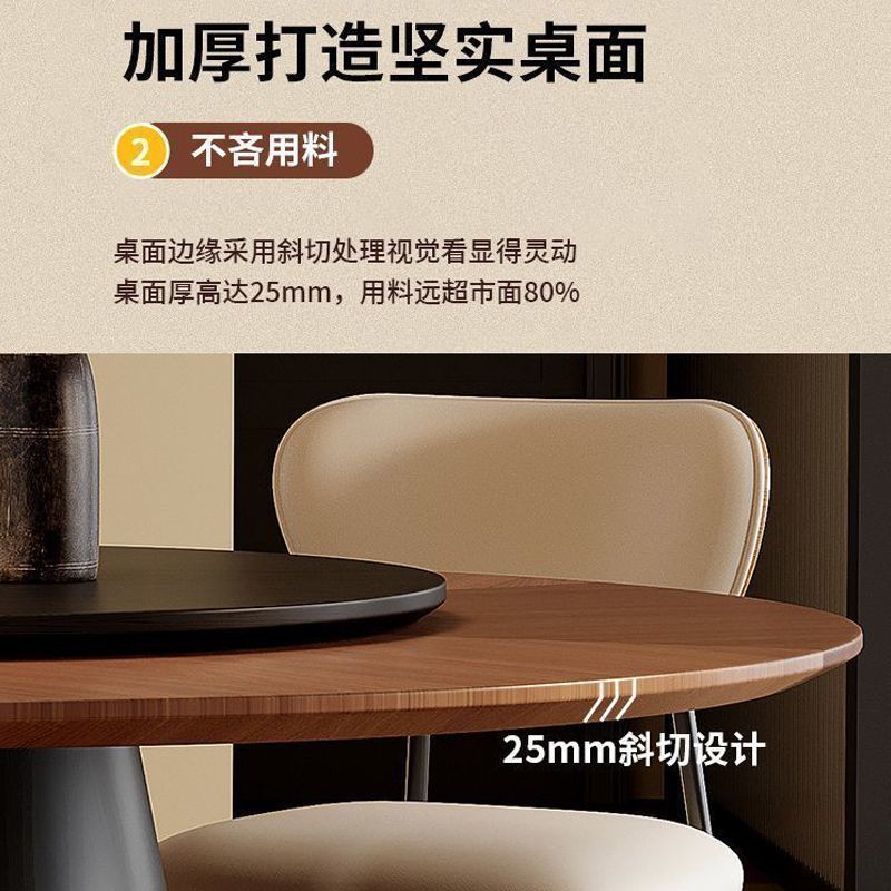 中古风实木餐桌椅组合碳素钢圆形桌轻奢圆桌带转盘家用小户型餐桌