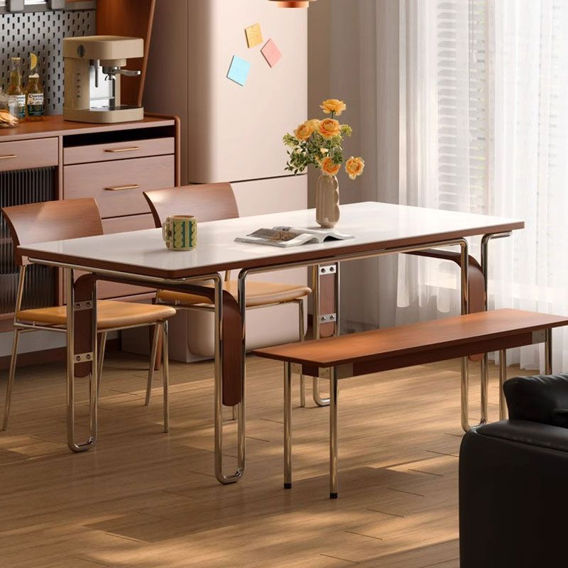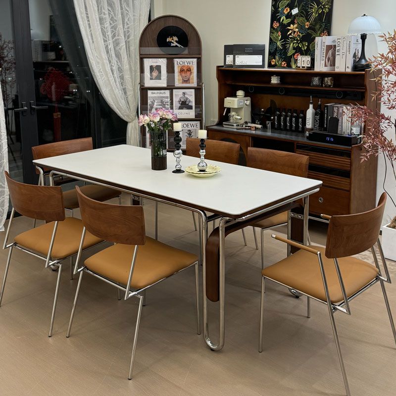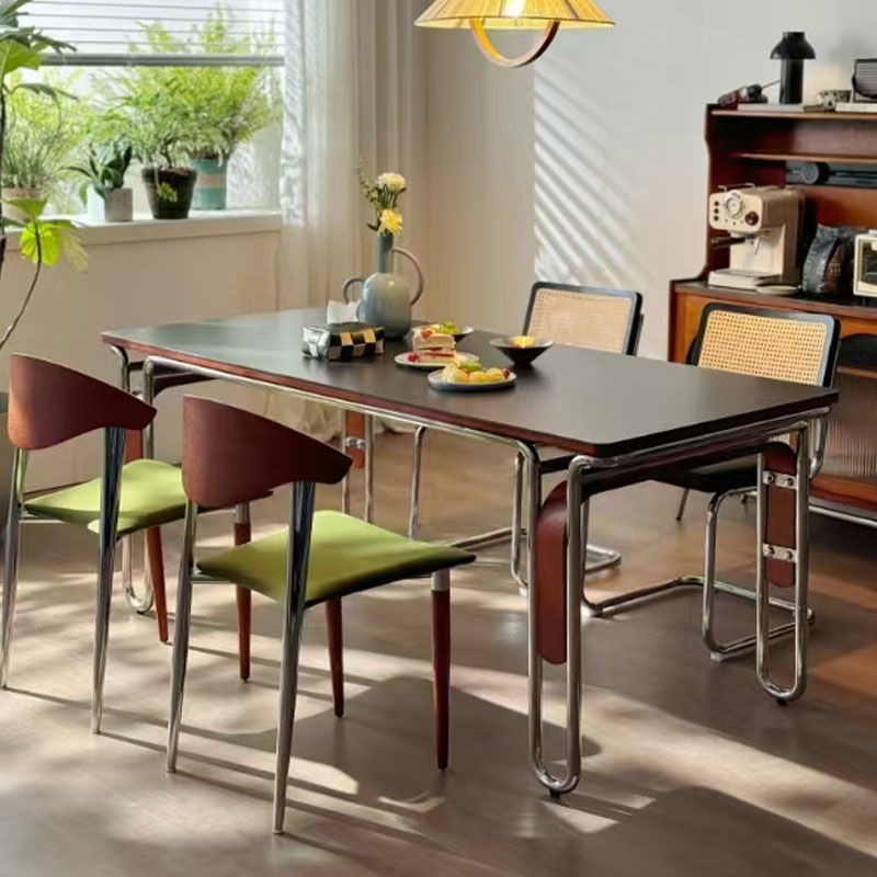 中古风岩板餐桌餐椅组合家用小户型2025新款长方形包豪斯复古饭桌