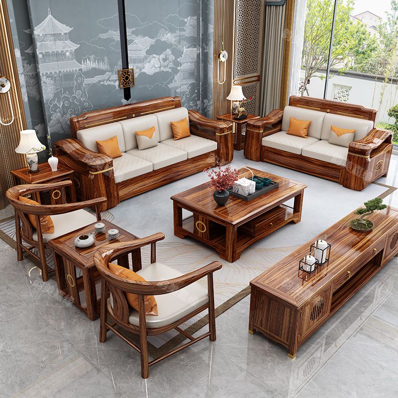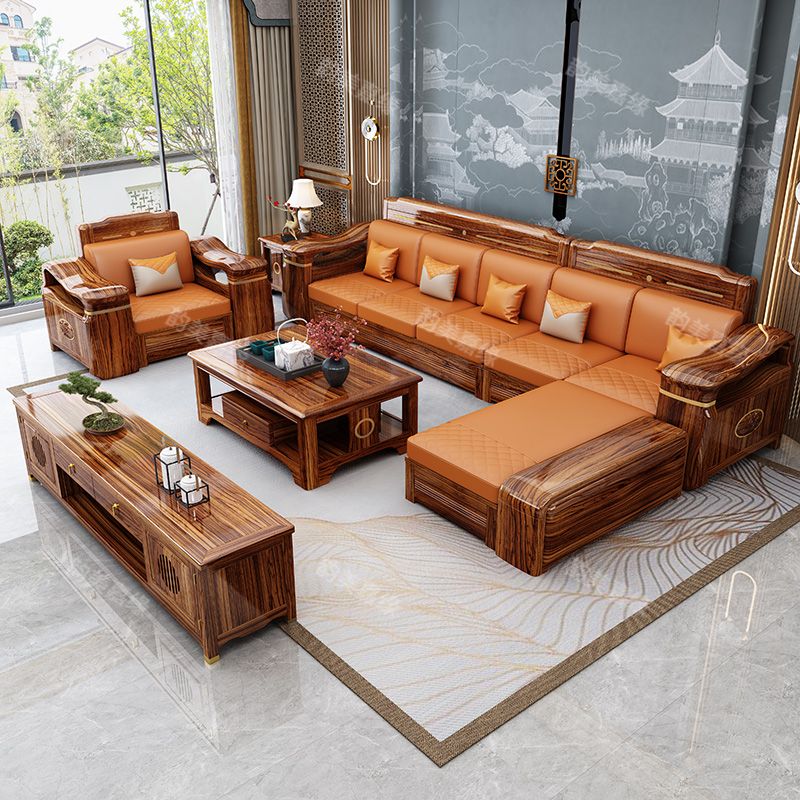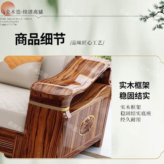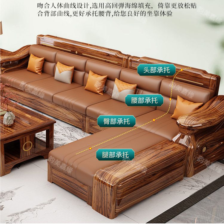 乌金木贵妃转角实木沙发现代组合小户型家用冬夏两用高档储物客厅